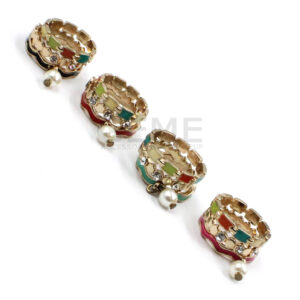 Set 3 δαχτυλίδια πολύχρωμα με strass και κρεμαστή πέρλα