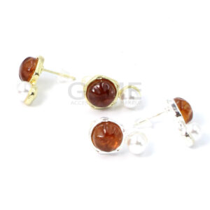 Σκουλαρίκια καφέ πέτρα και πέρλα s925