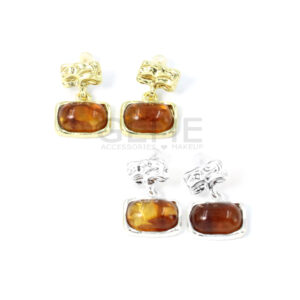 Σκουλαρίκια καφέ πέτρα ορθογώνια s925