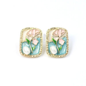 Σκουλαρίκια ορθογώνια με λουλούδι και πέρλα