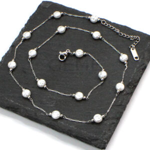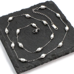 Ατσάλινο κολιέ αλυσίδα με πέρλα