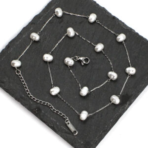 Ατσάλινο κολιέ με πέρλες 5.7mm