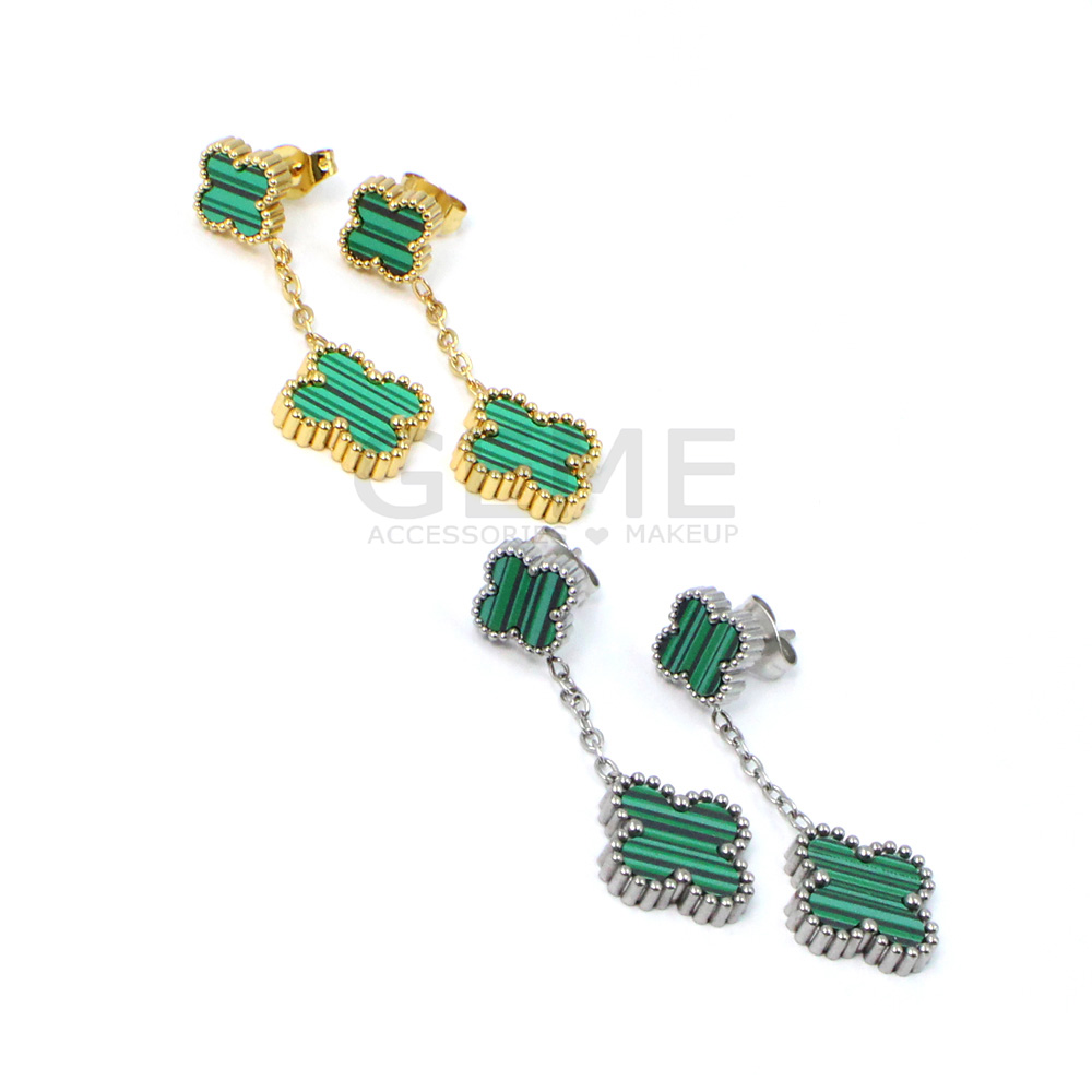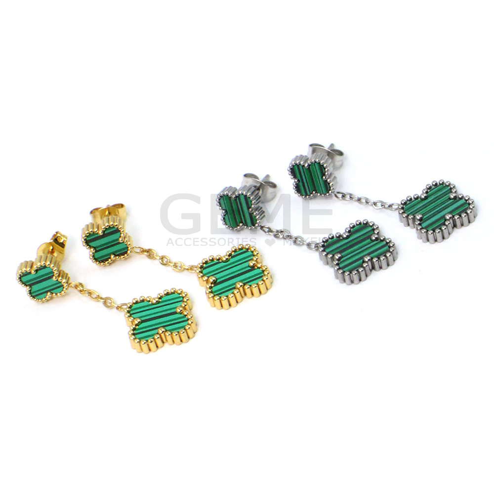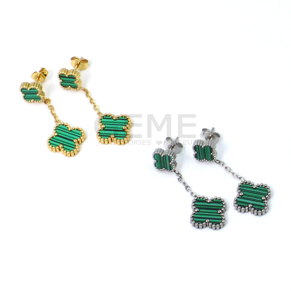 Ατσάλινα κρεμαστά σκουλαρίκια clover GREEN ποσότητα