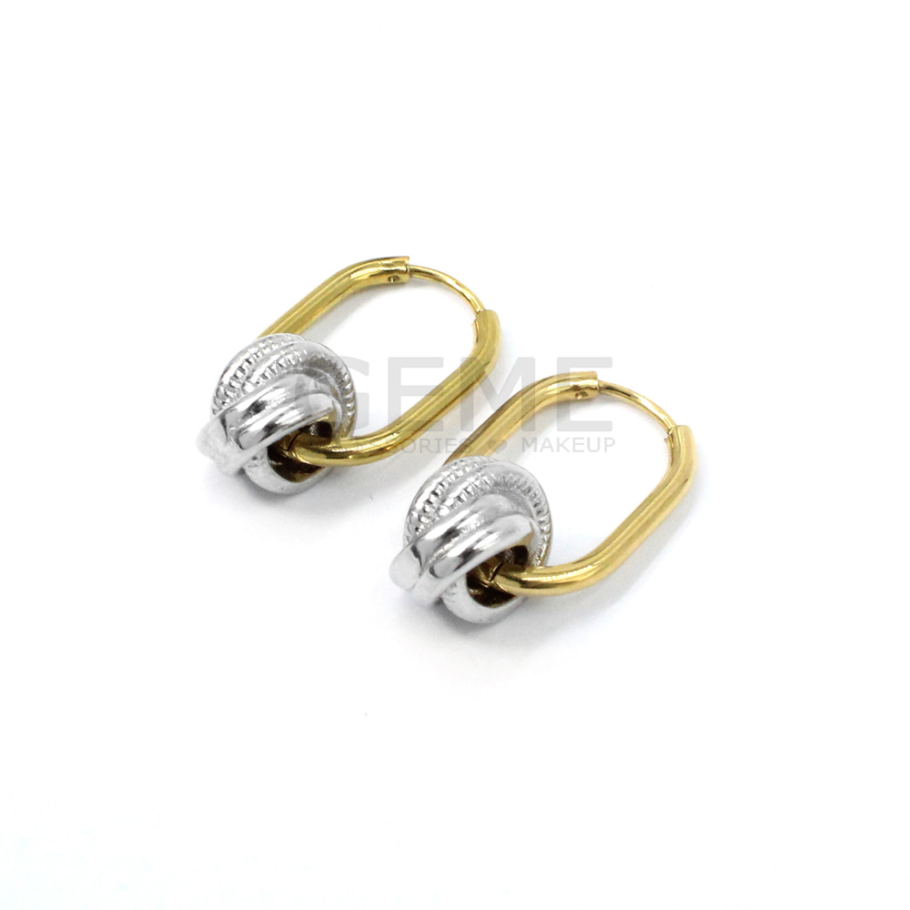 Ατσάλινα κρικάκια ανάγλυφο ball δίχρωμο