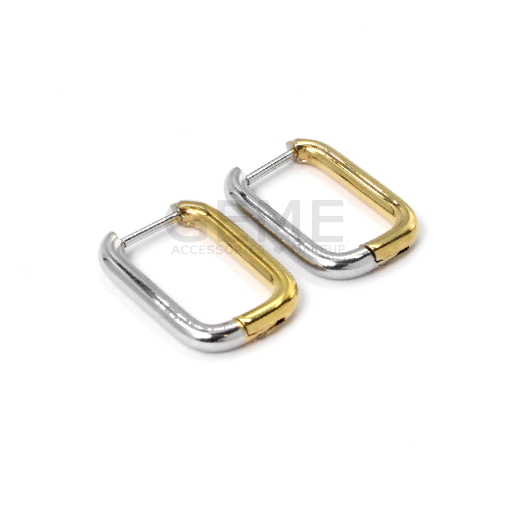 Ατσάλινα κρικάκια δίχρωμα ορθογώνια/οβάλ 1.8cm