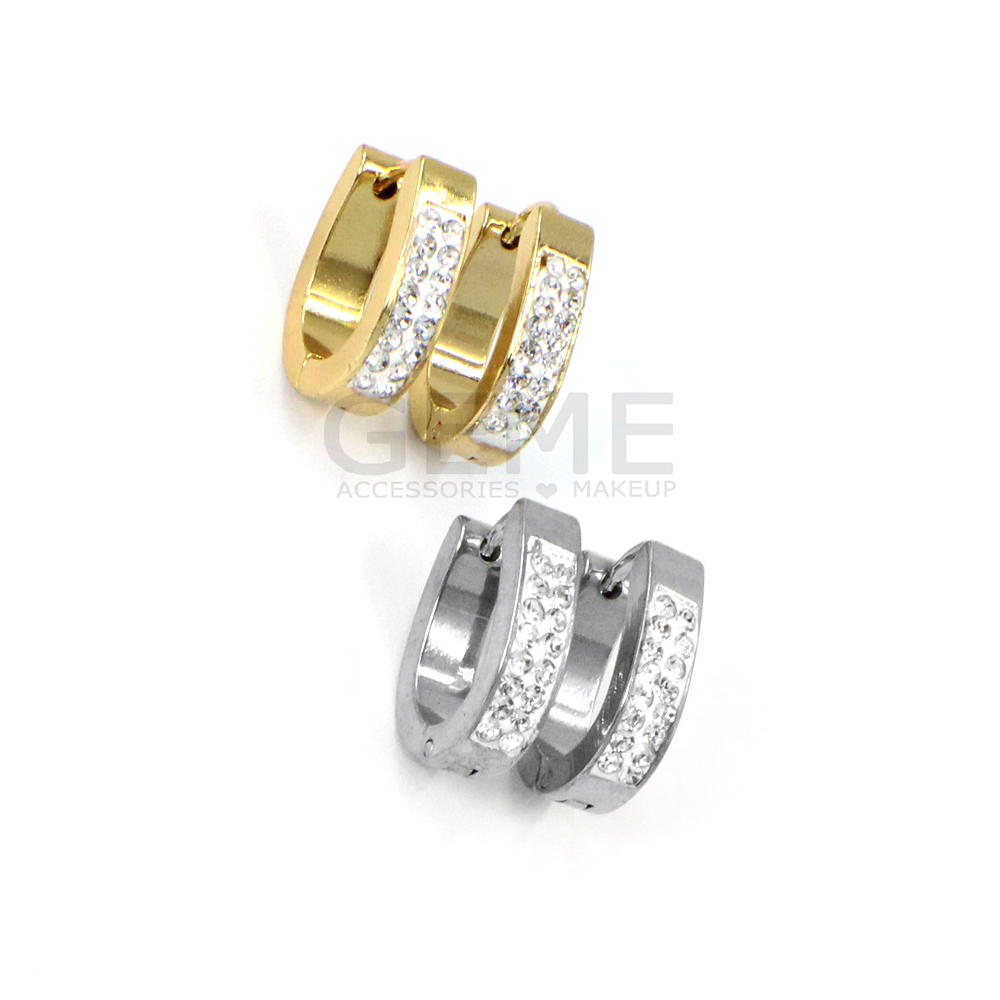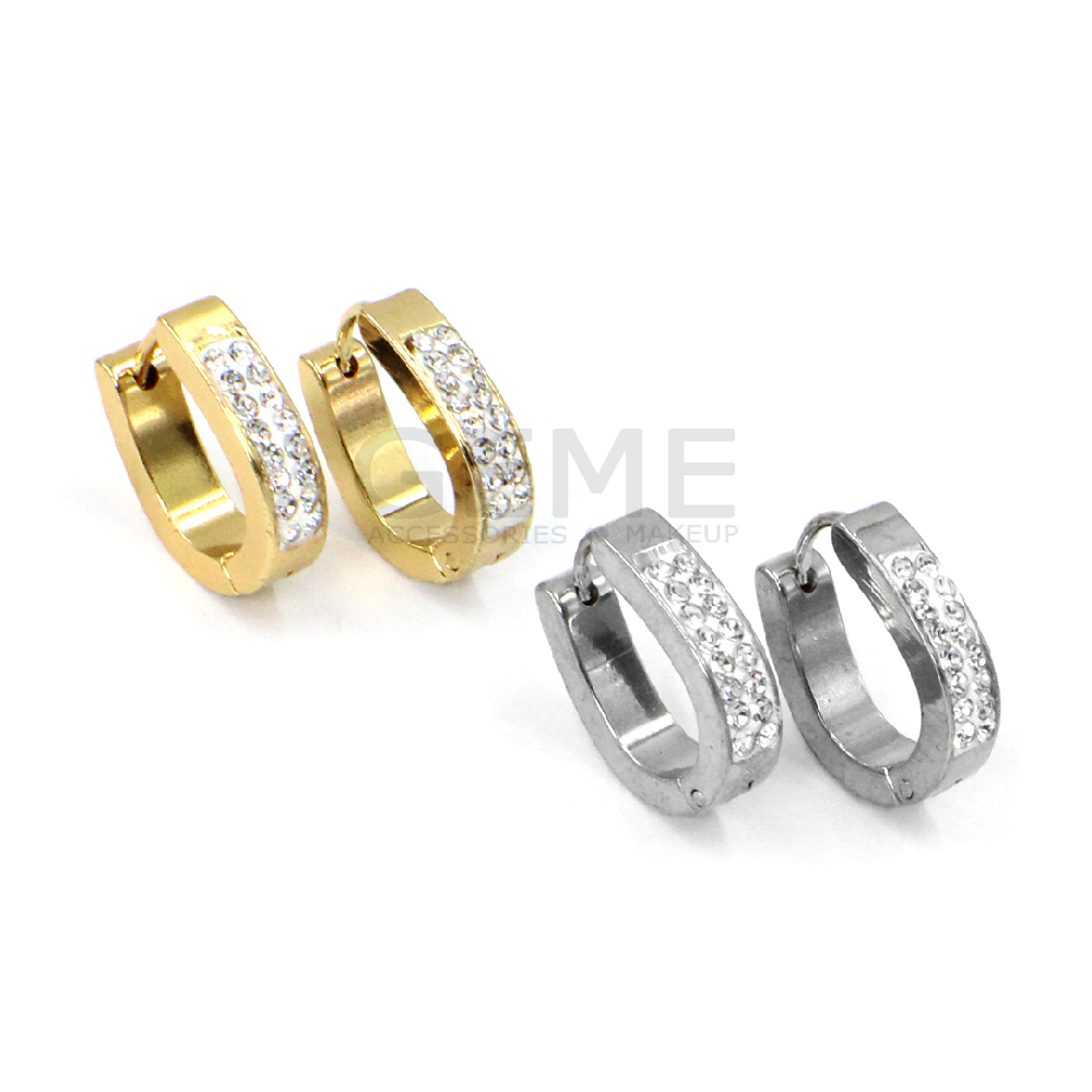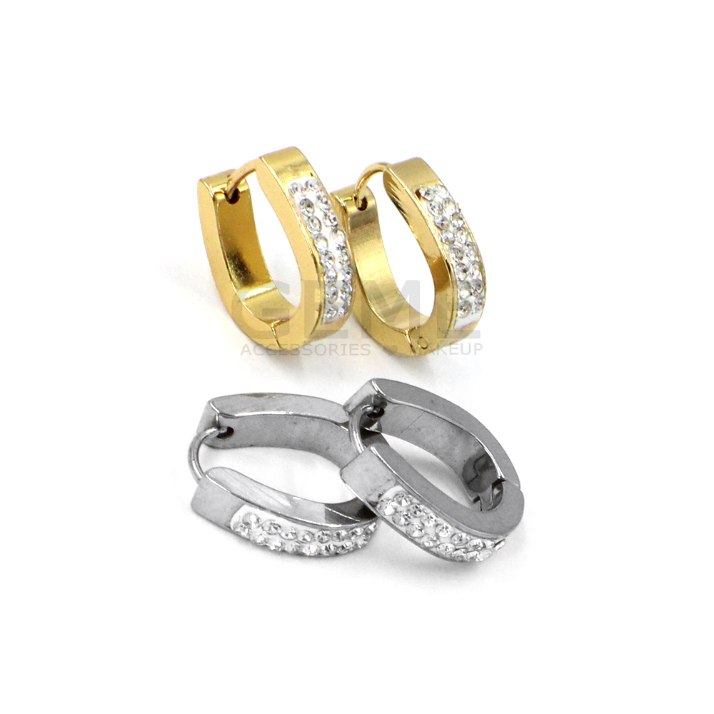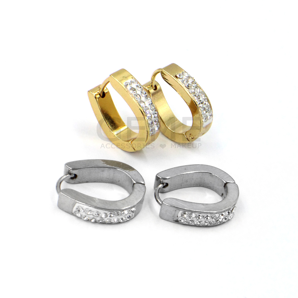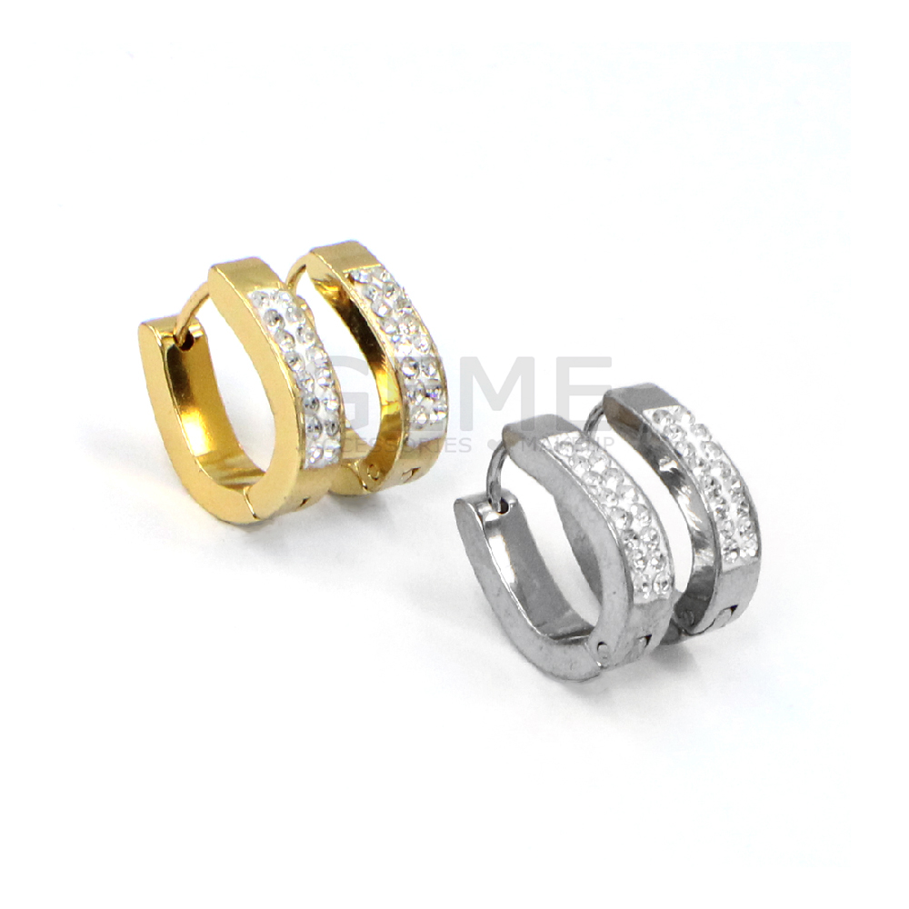 Ατσάλινα κρικάκια οβάλ με 2 σειρές strass ποσότητα