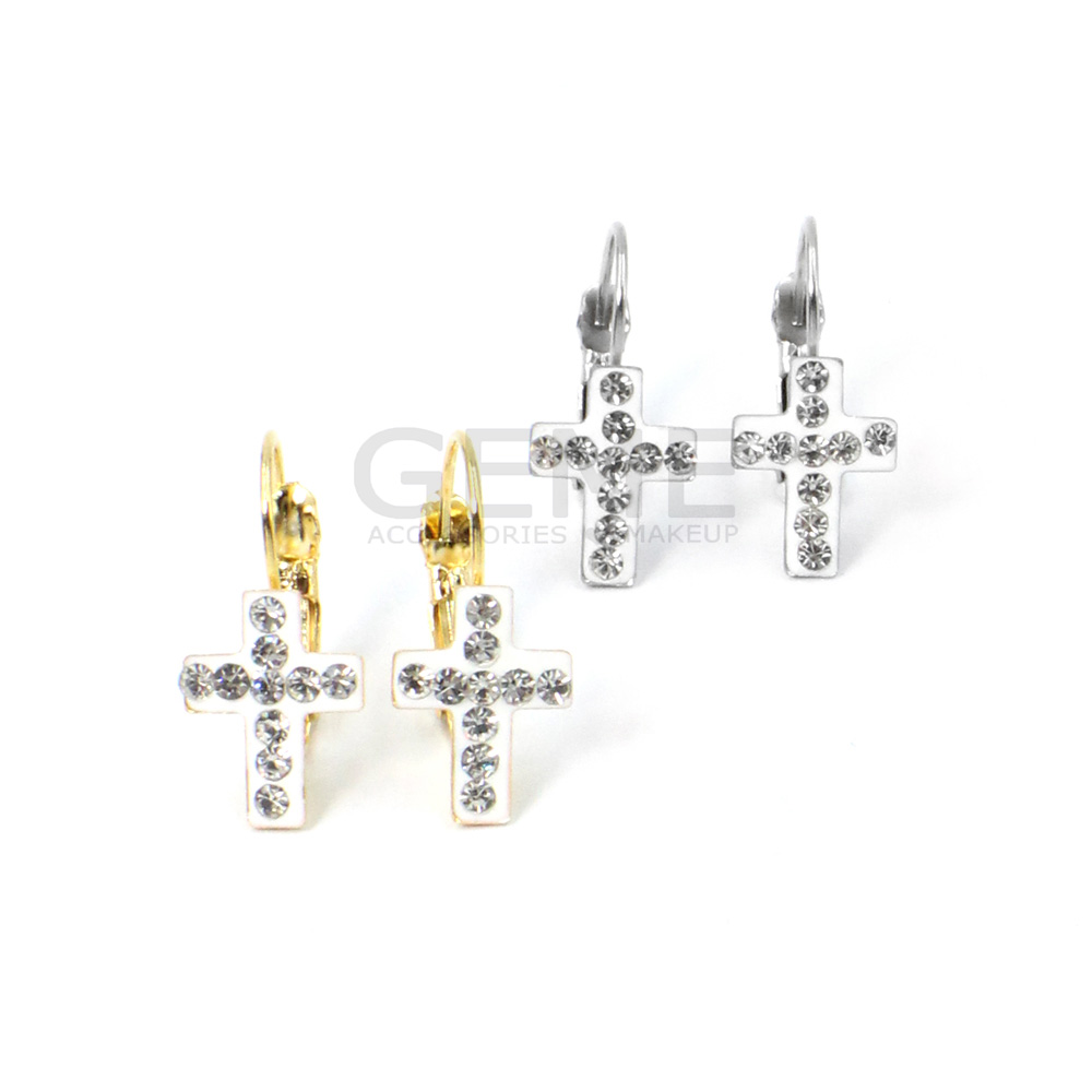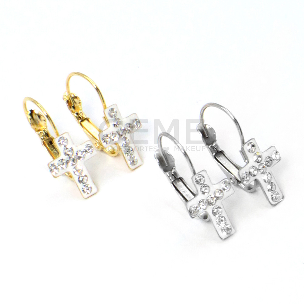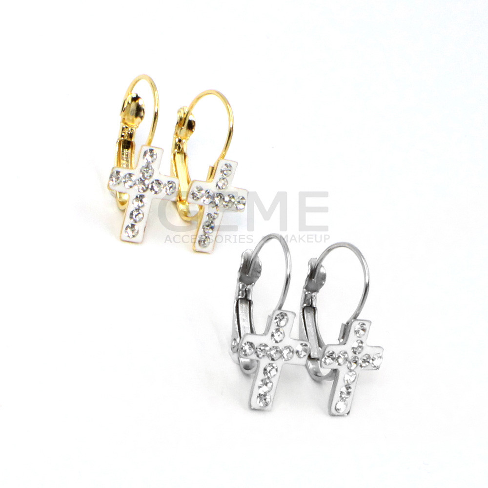 Ατσάλινα σκουλαρίκια γάντζος σταυρός με strass ποσότητα