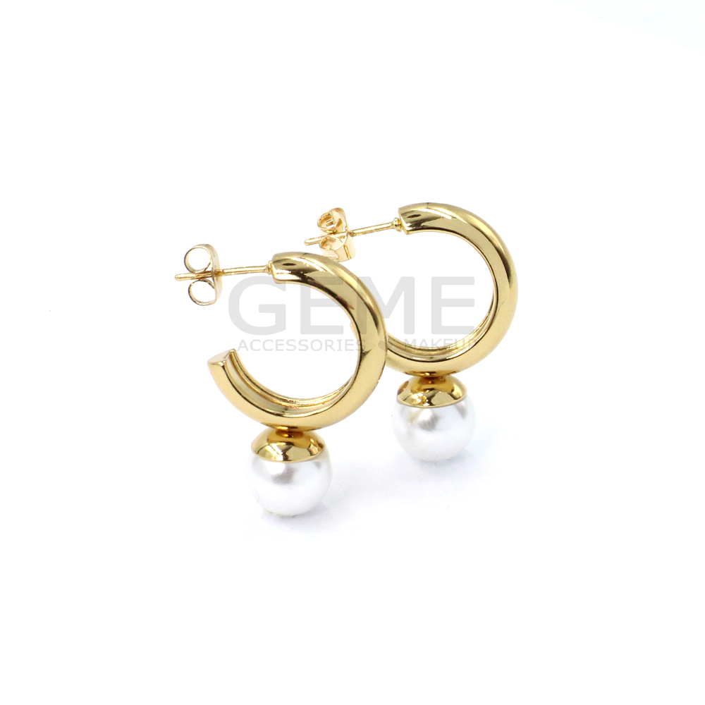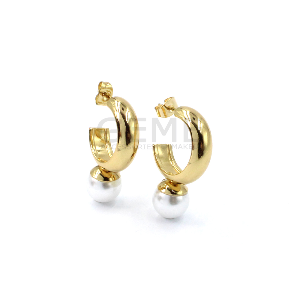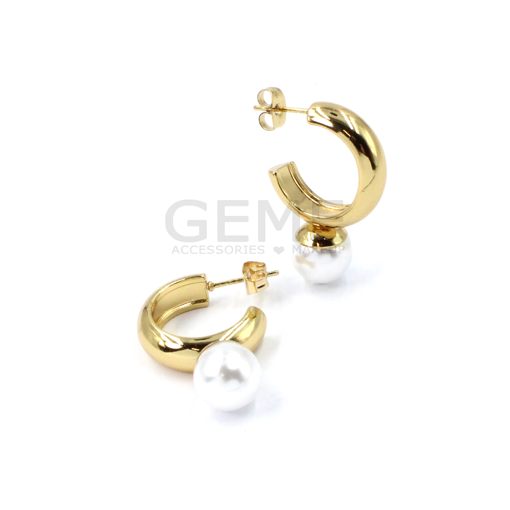 Ατσάλινα σκουλαρίκια κρίκοι με πέρλα ποσότητα