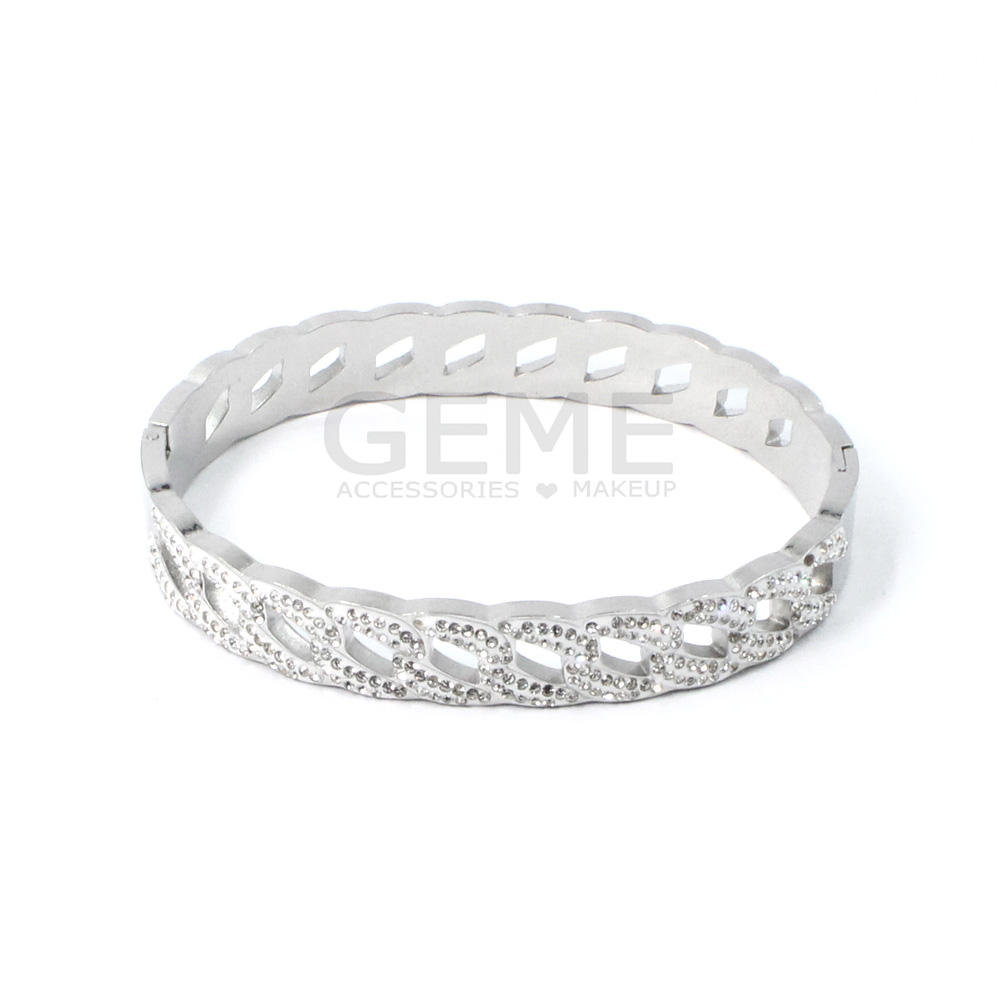 Ατσάλινο βραχιόλι χειροπέδα Θ στρας
