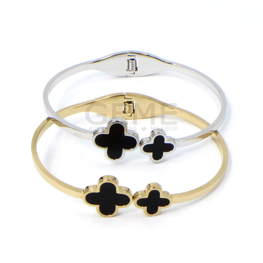 Ατσάλινο σκουλαρίκι clover GOLD-RED