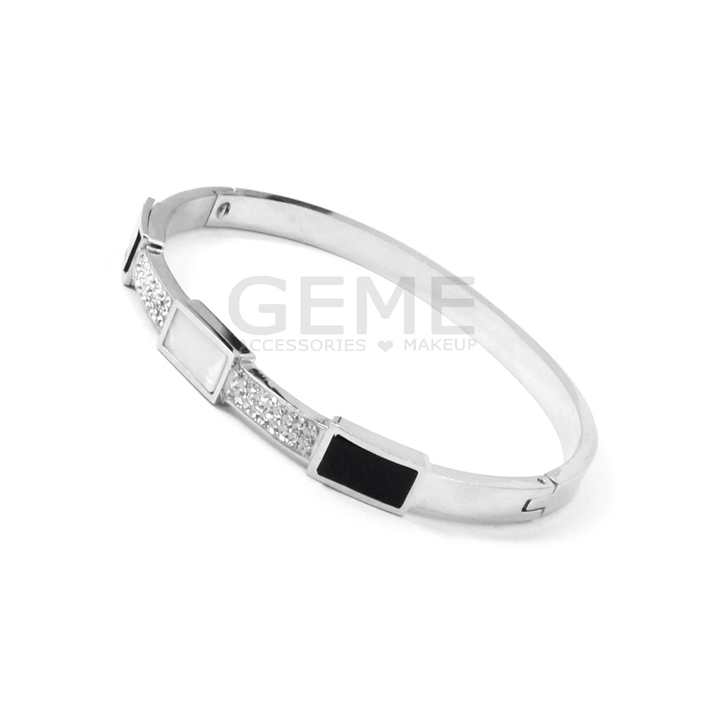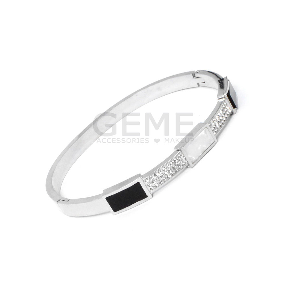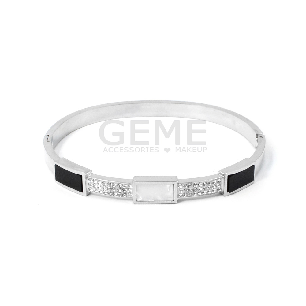 Ατσάλινο βραχιόλι χειροπέδα με δύο σειρές στρας