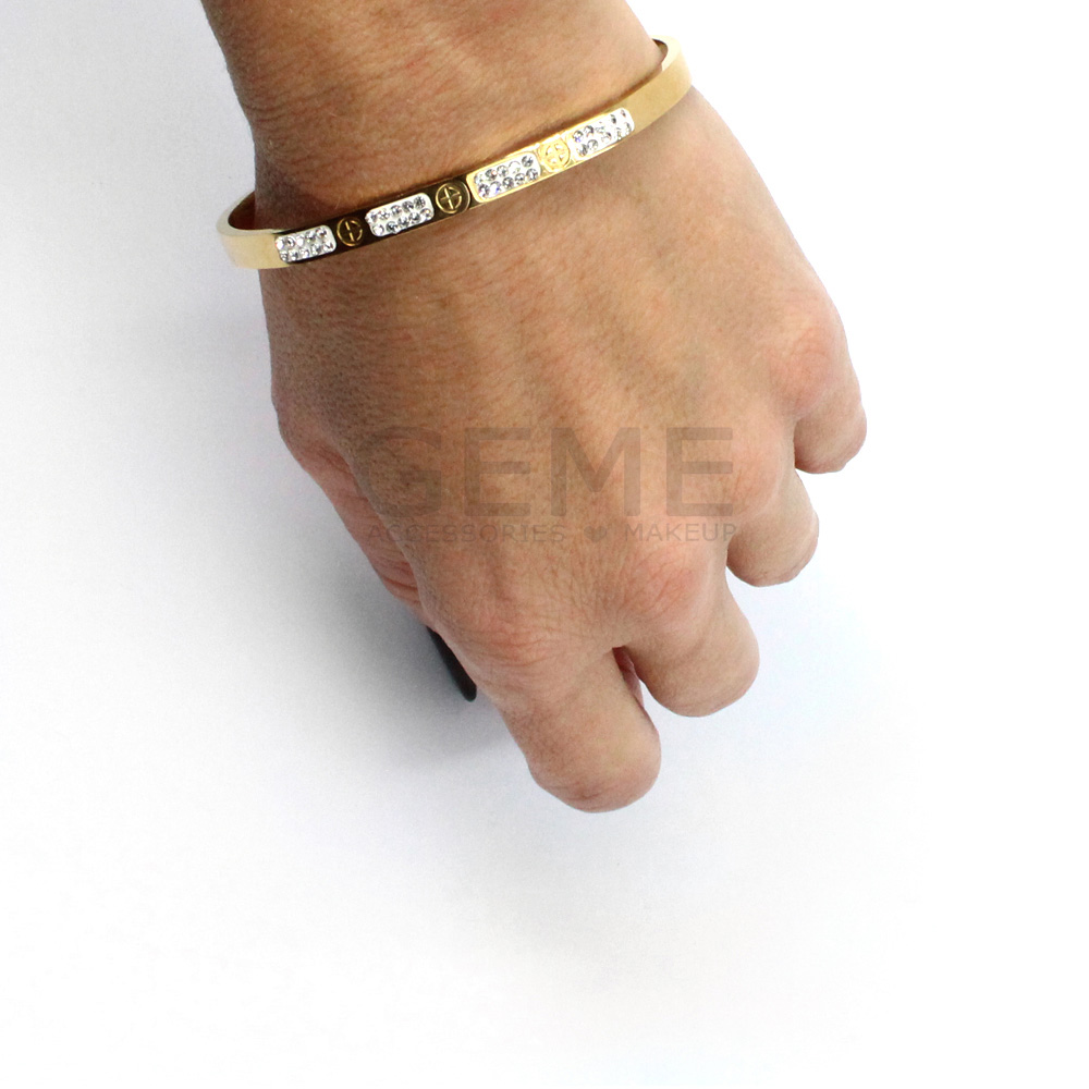 Ατσάλινη χειροπέδα strass GOLD ποσότητα