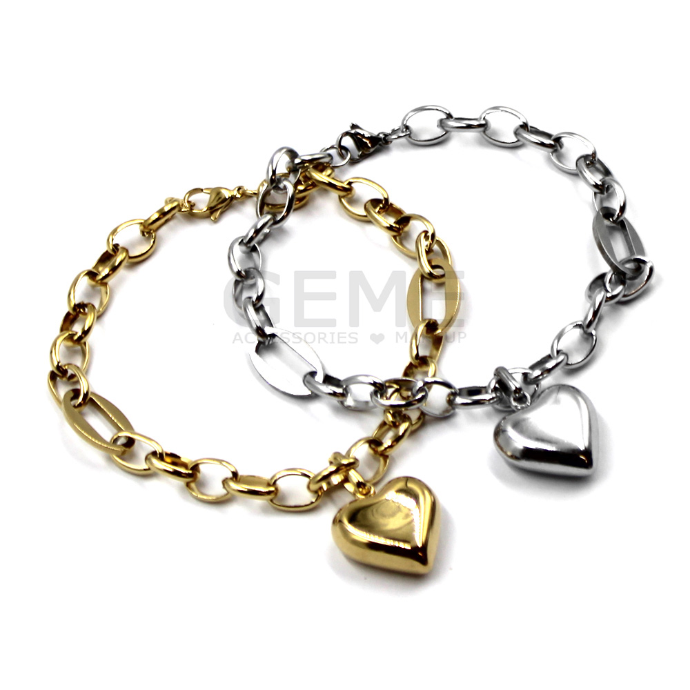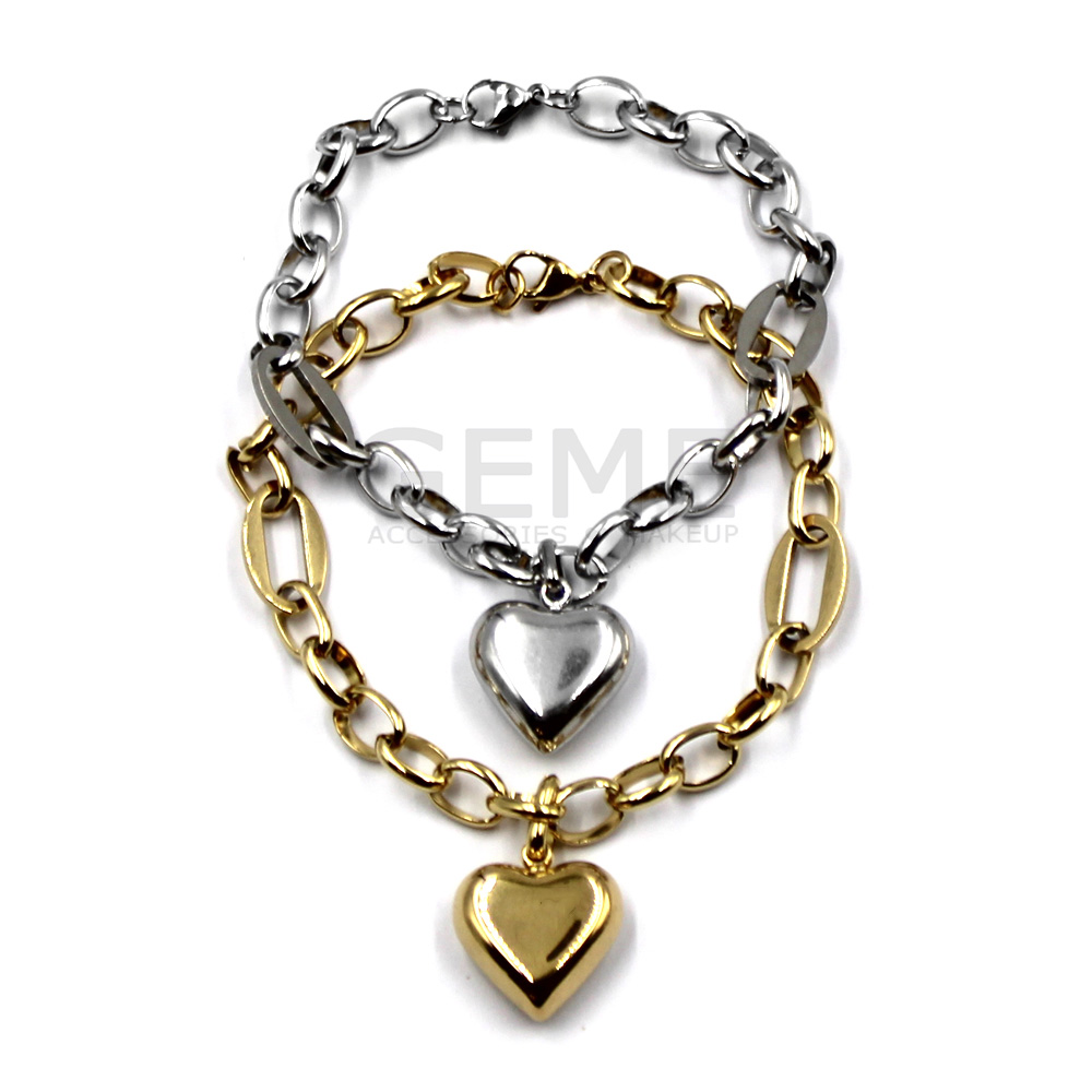Ατσάλινο βραχιόλι αλυσίδα με καρδιά ποσότητα