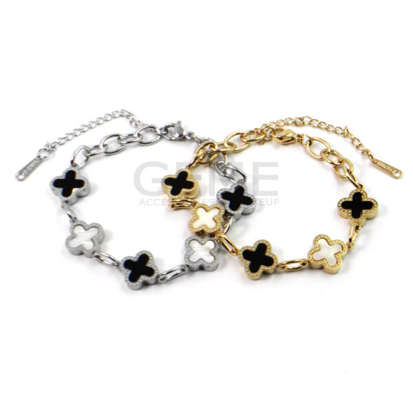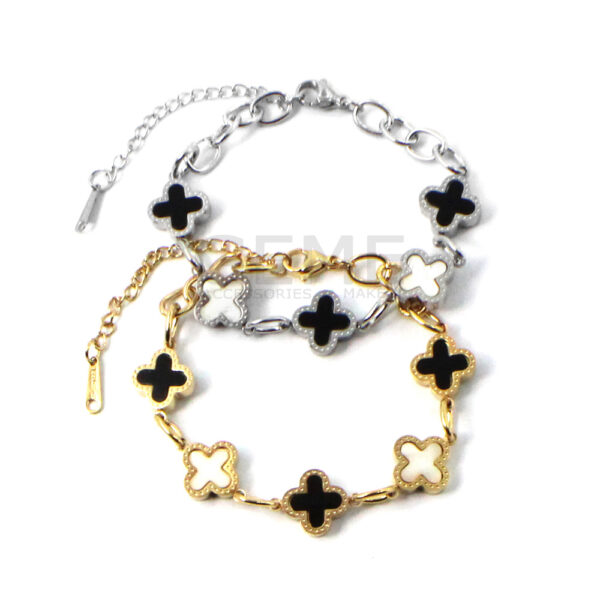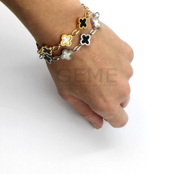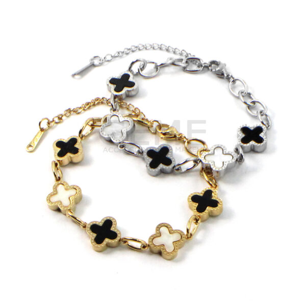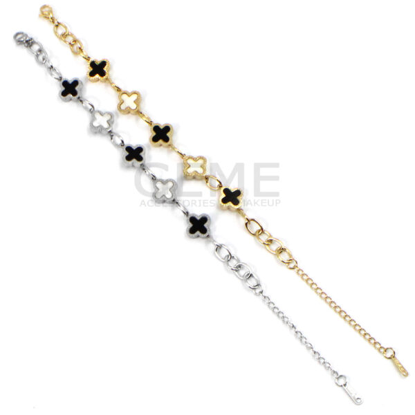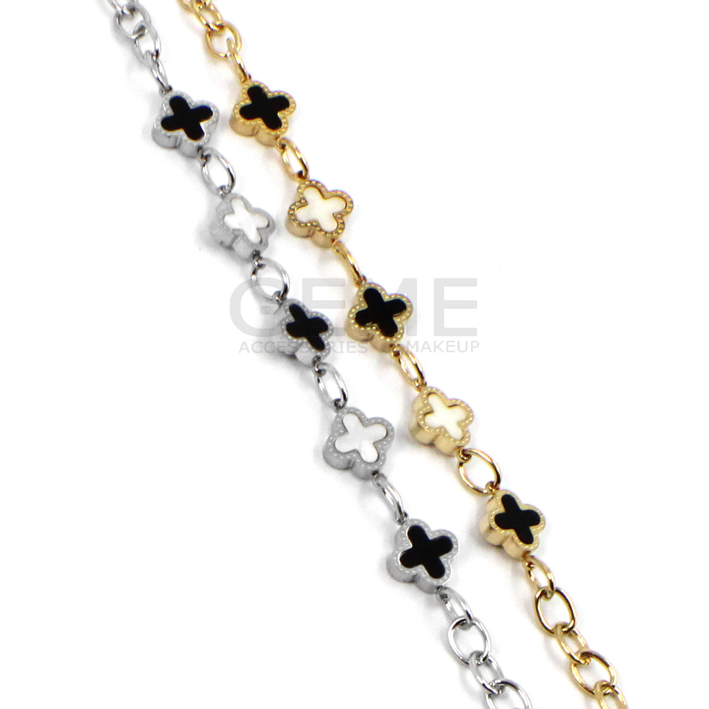 Ατσάλινο βραχιόλι αλυσίδα clover BLACK-WHITE ποσότητα