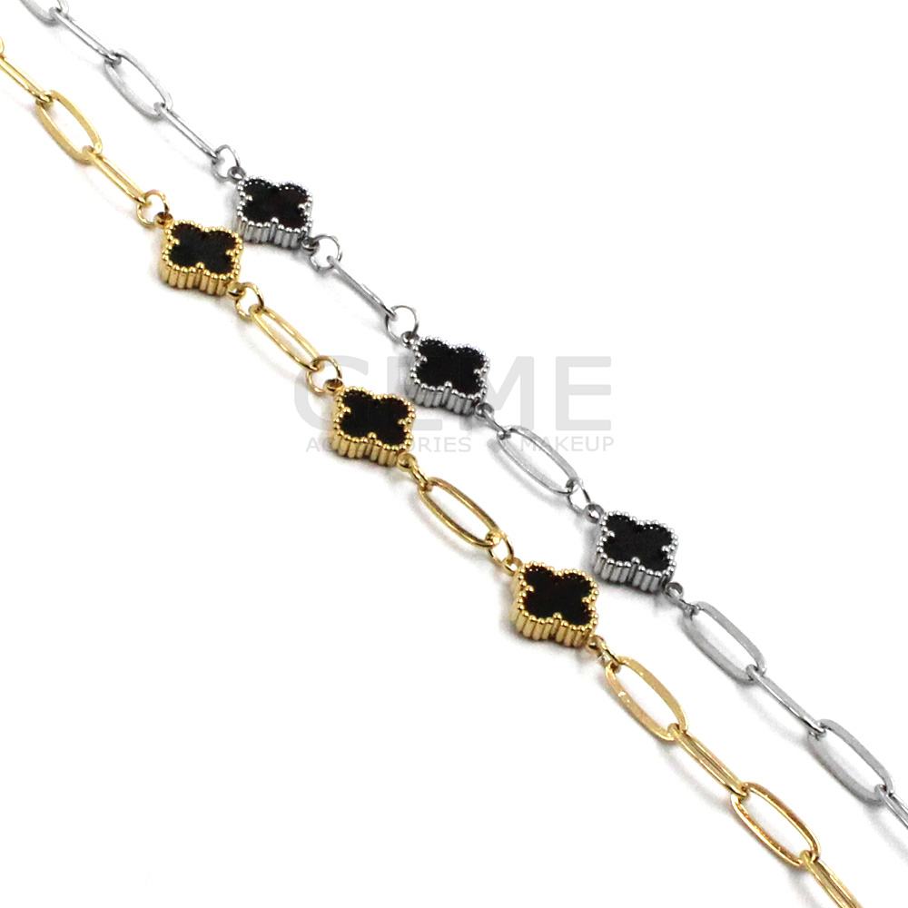 Ατσάλινο βραχιόλι αλυσίδα clover BLACK ποσότητα