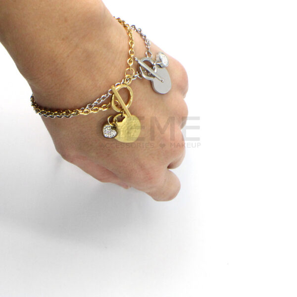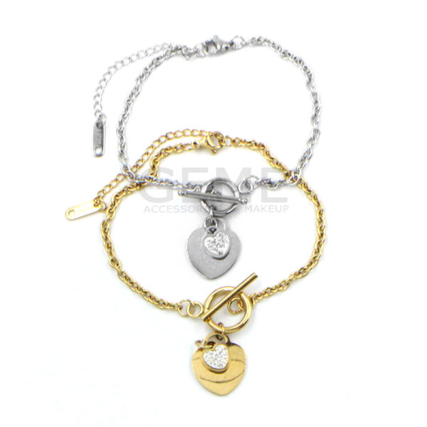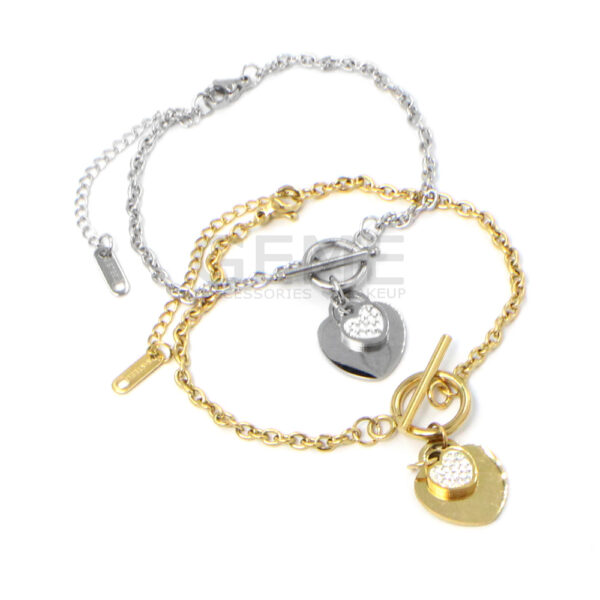 Ατσάλινο βραχιόλι καρδιές strass ποσότητα