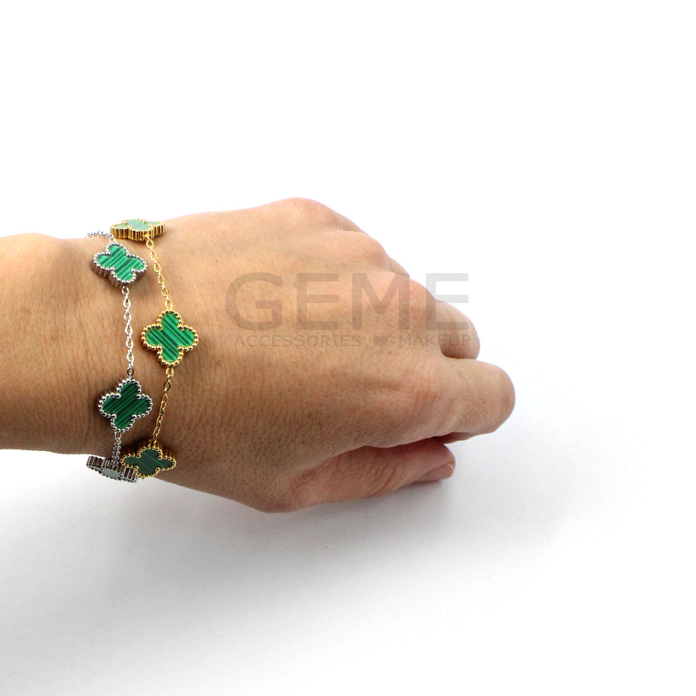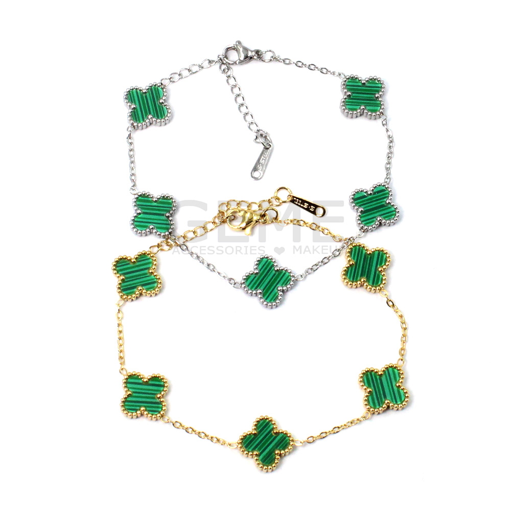 Ατσάλινο βραχιόλι clover GREEN ποσότητα