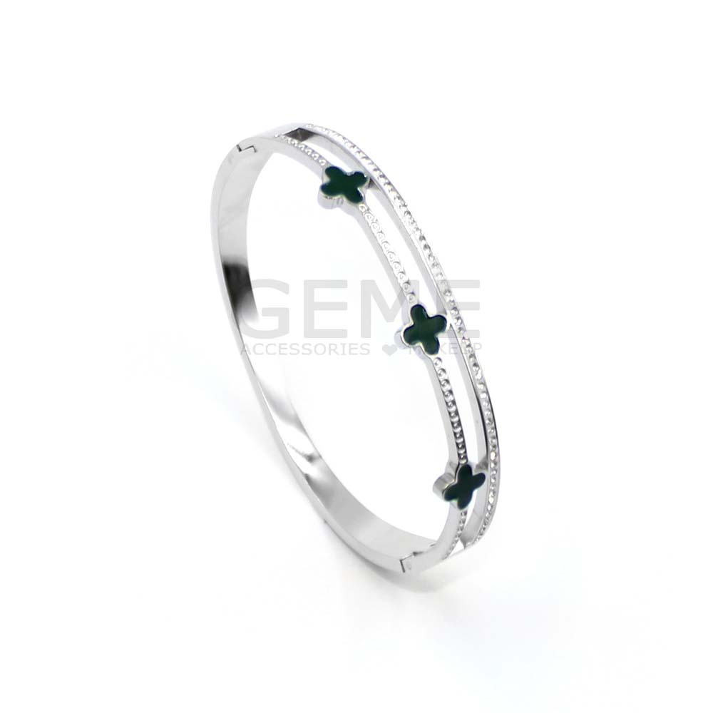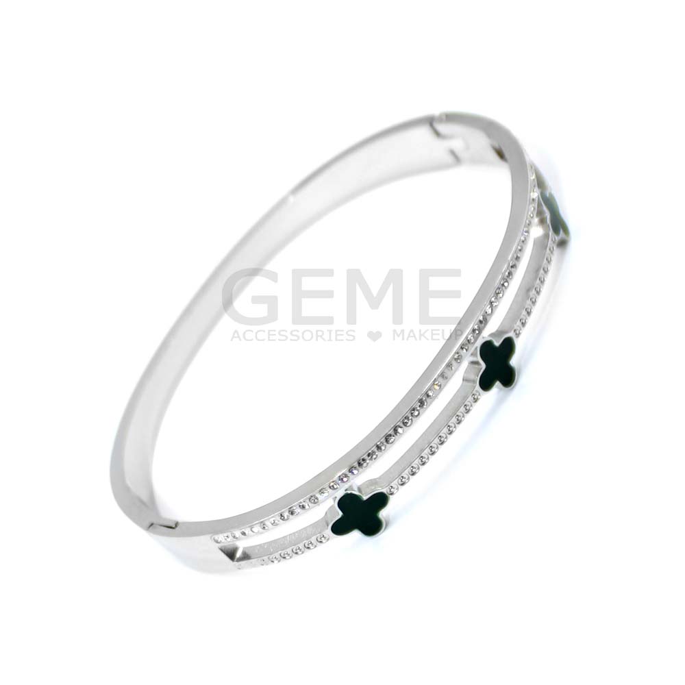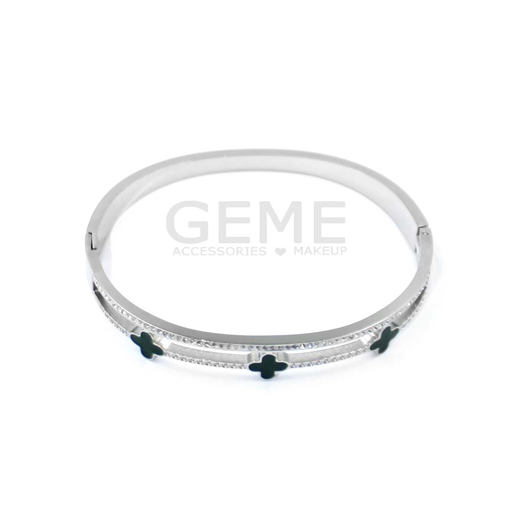 Ατσάλινο βραχιόλι χειροπέδα clover με strass ποσότητα