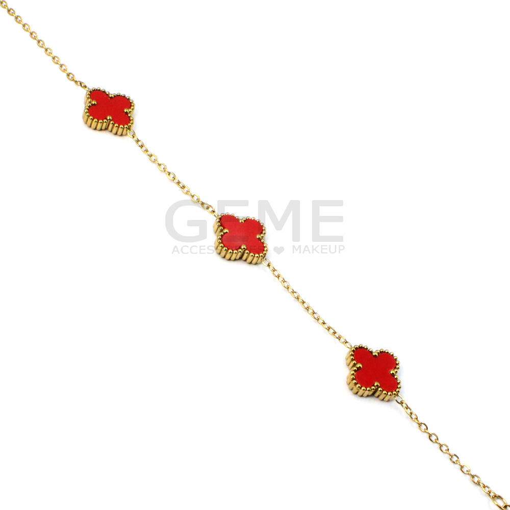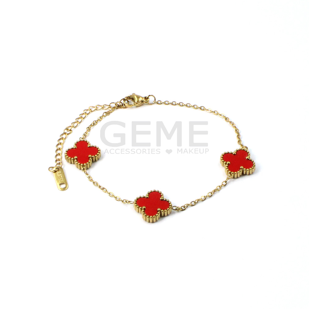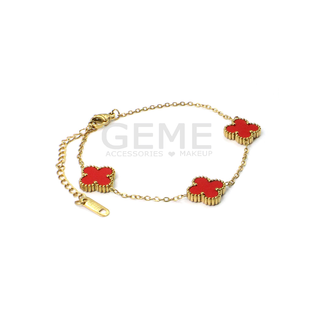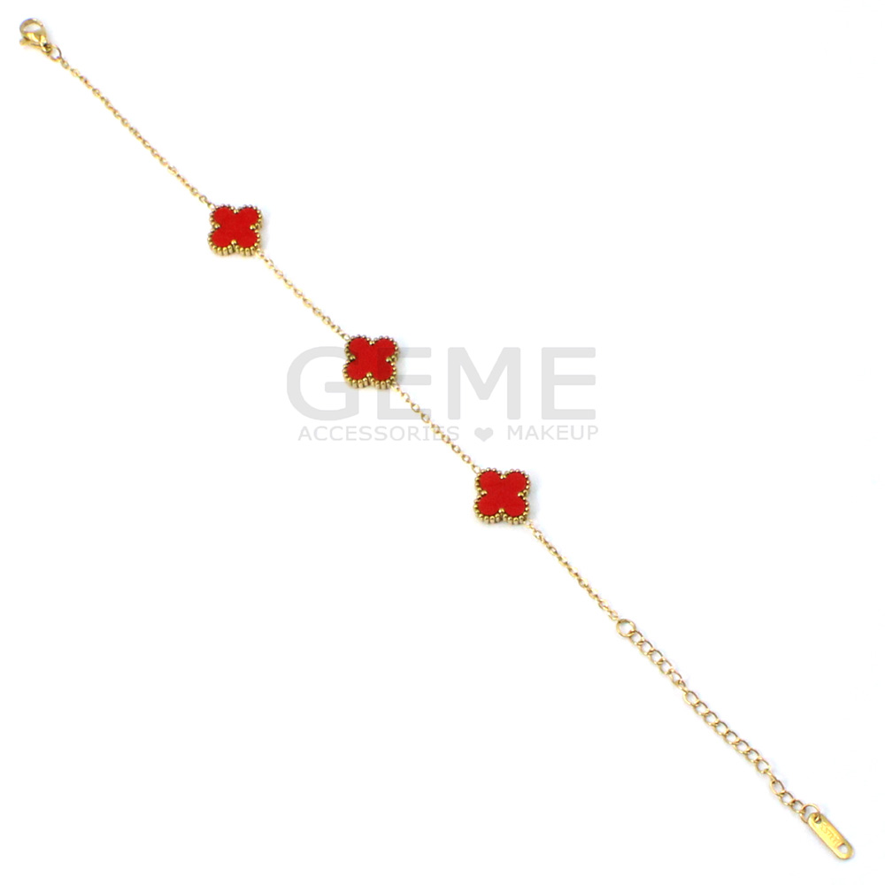 Ατσάλινο βραχιόλι clover RED (3) ποσότητα