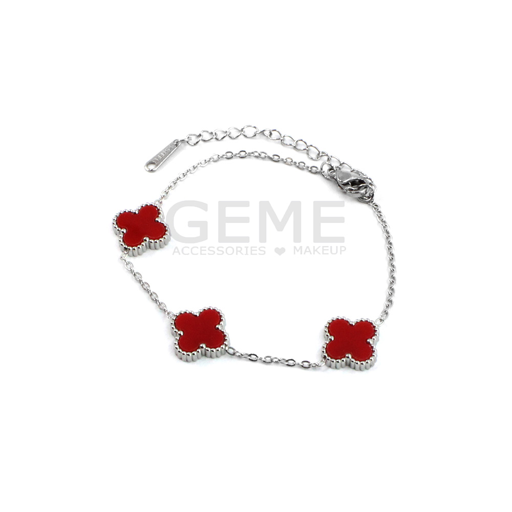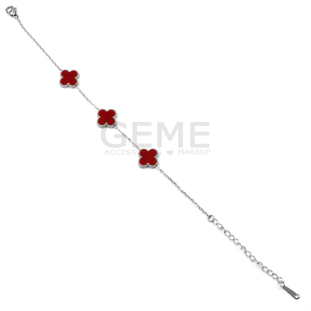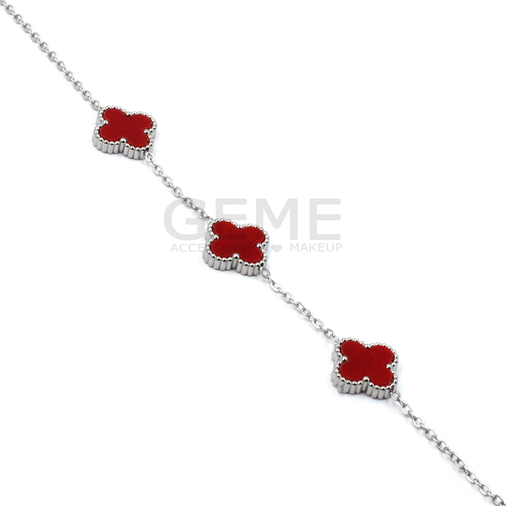 Ατσάλινο βραχιόλι clover RED (3) ποσότητα