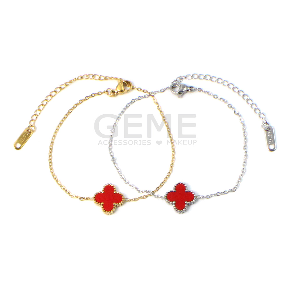 Ατσάλινο βραχιόλι clover RED ποσότητα