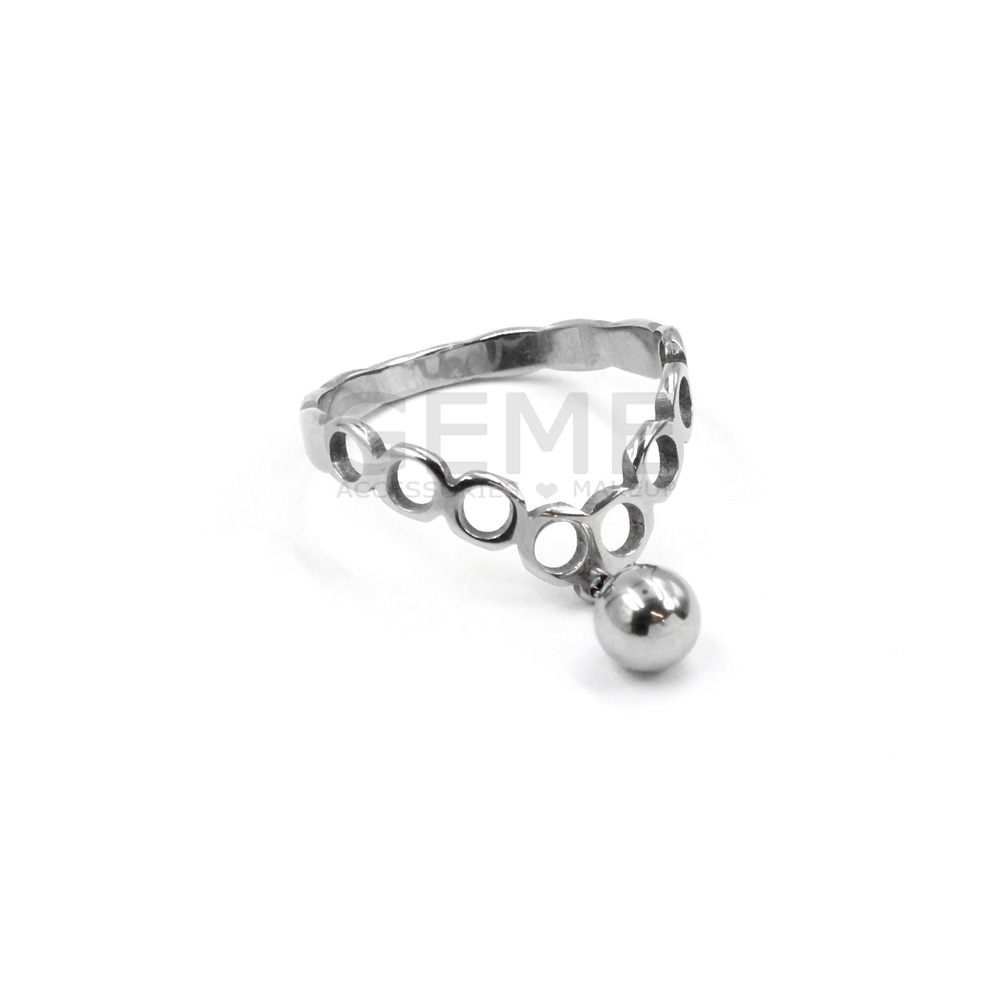 Ατσάλινο δαχτυλίδι κύκλοι με κρεμαστό ball