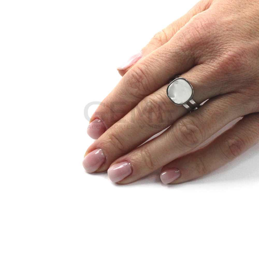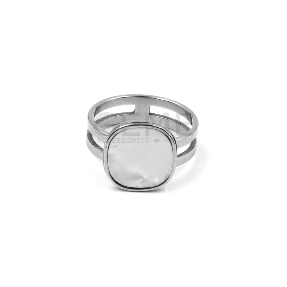 Ατσάλινο δαχτυλίδι με λευκή τετράγωνη πέτρα ποσότητα