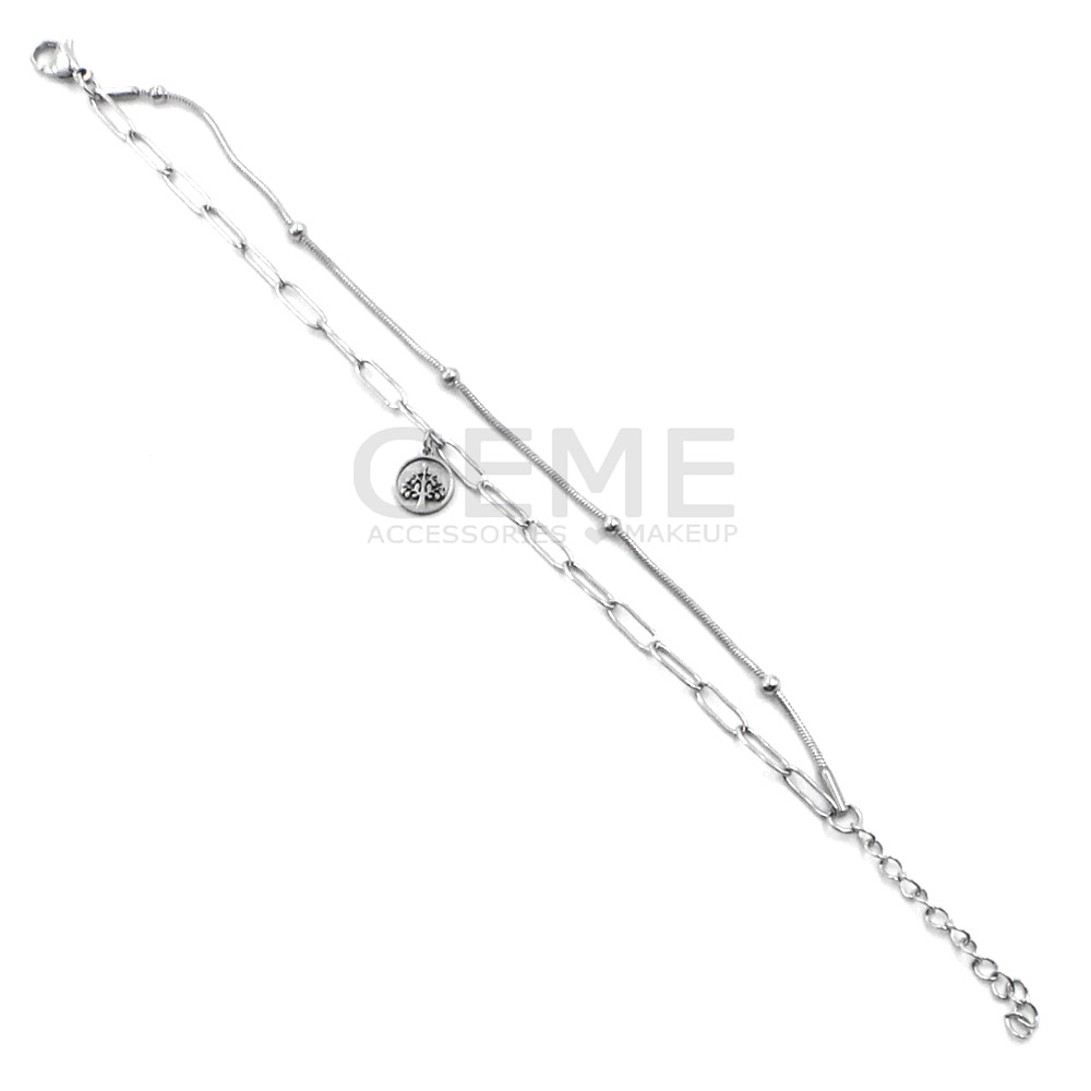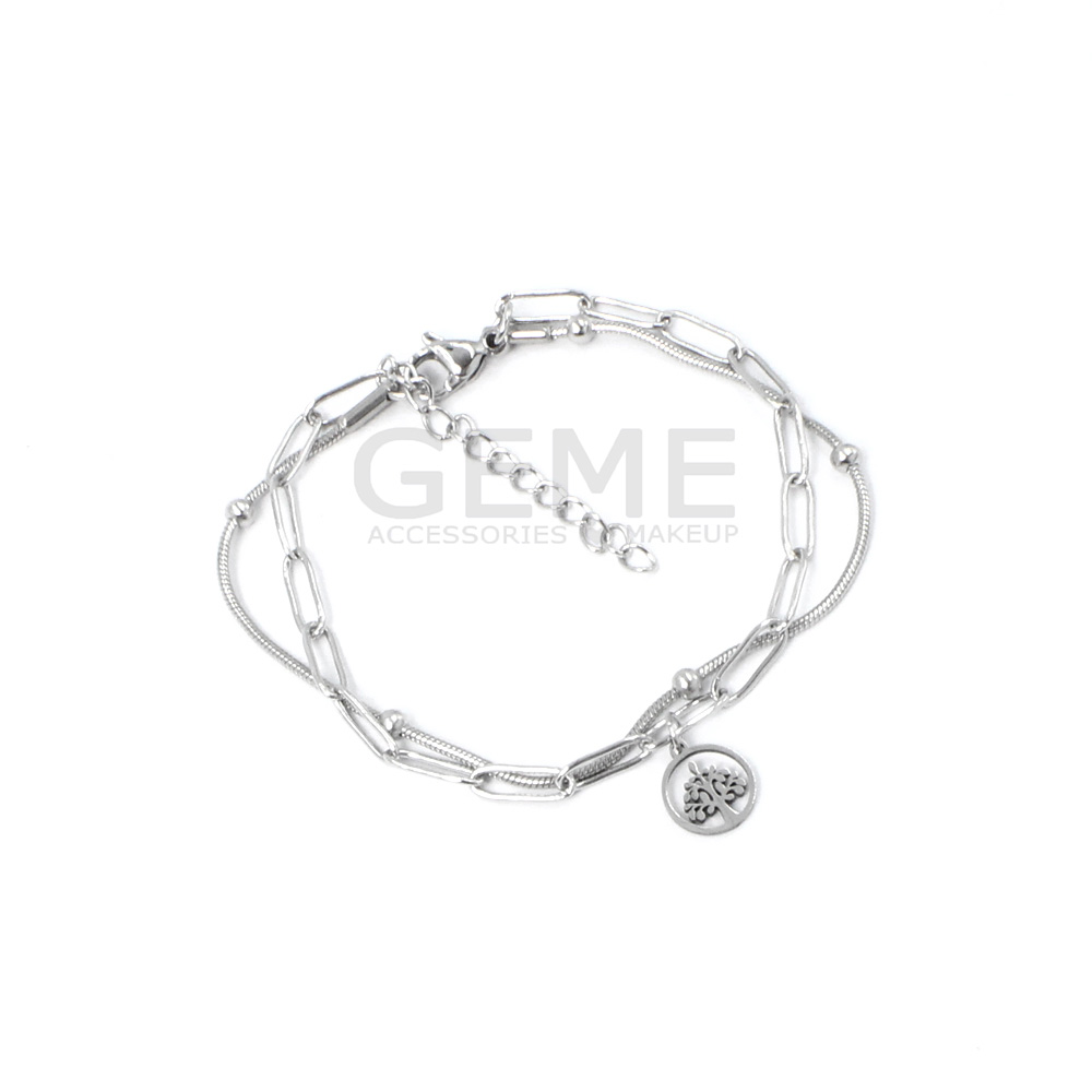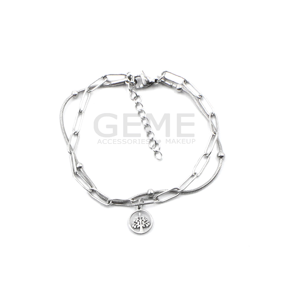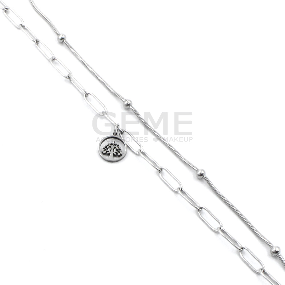 Ατσάλινο διπλό βραχιόλι round snake balls - αλυσίδα με δέντρο της ζωής ποσότητα