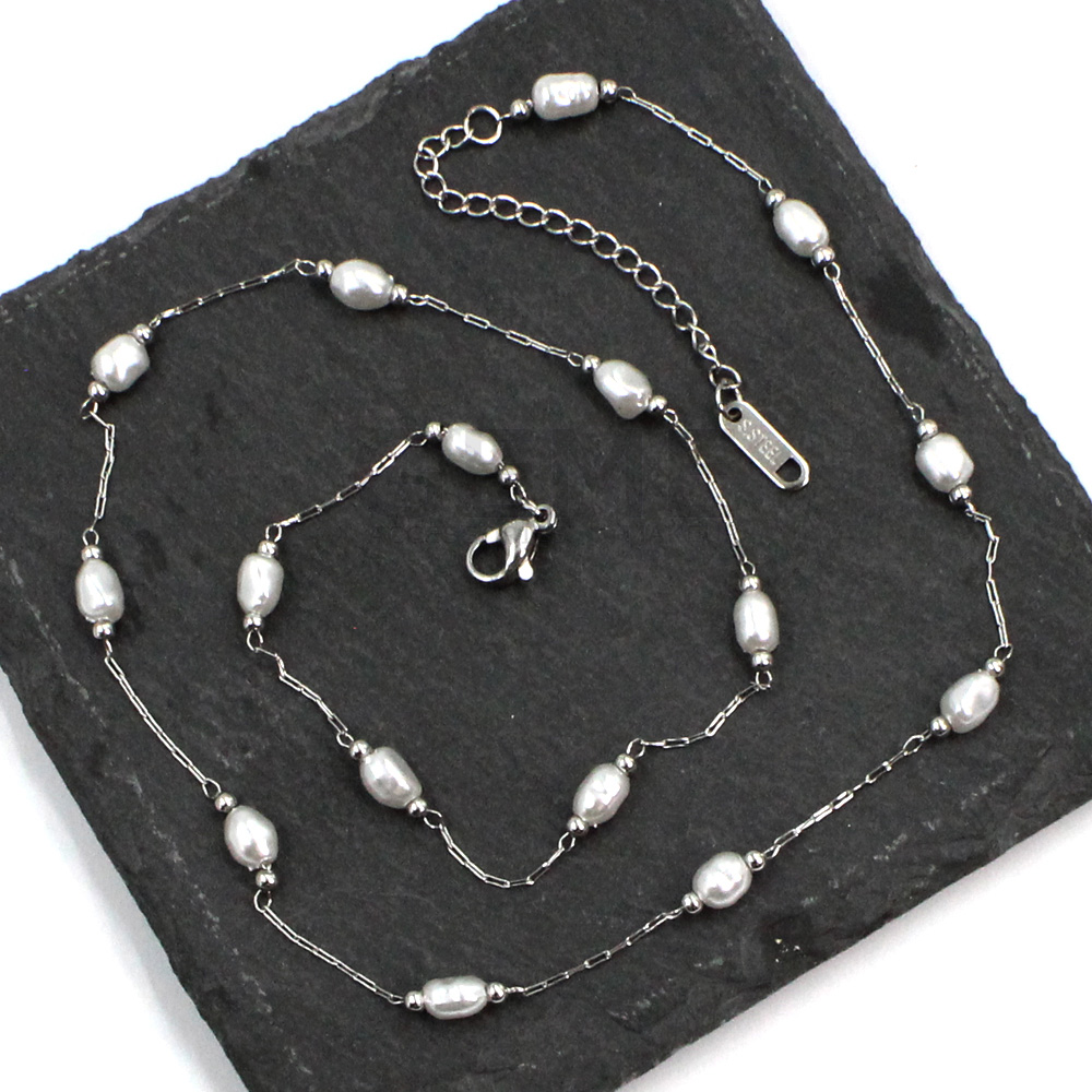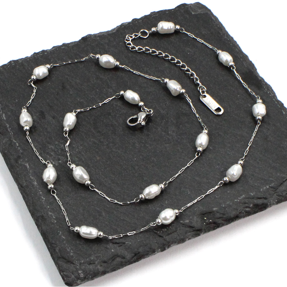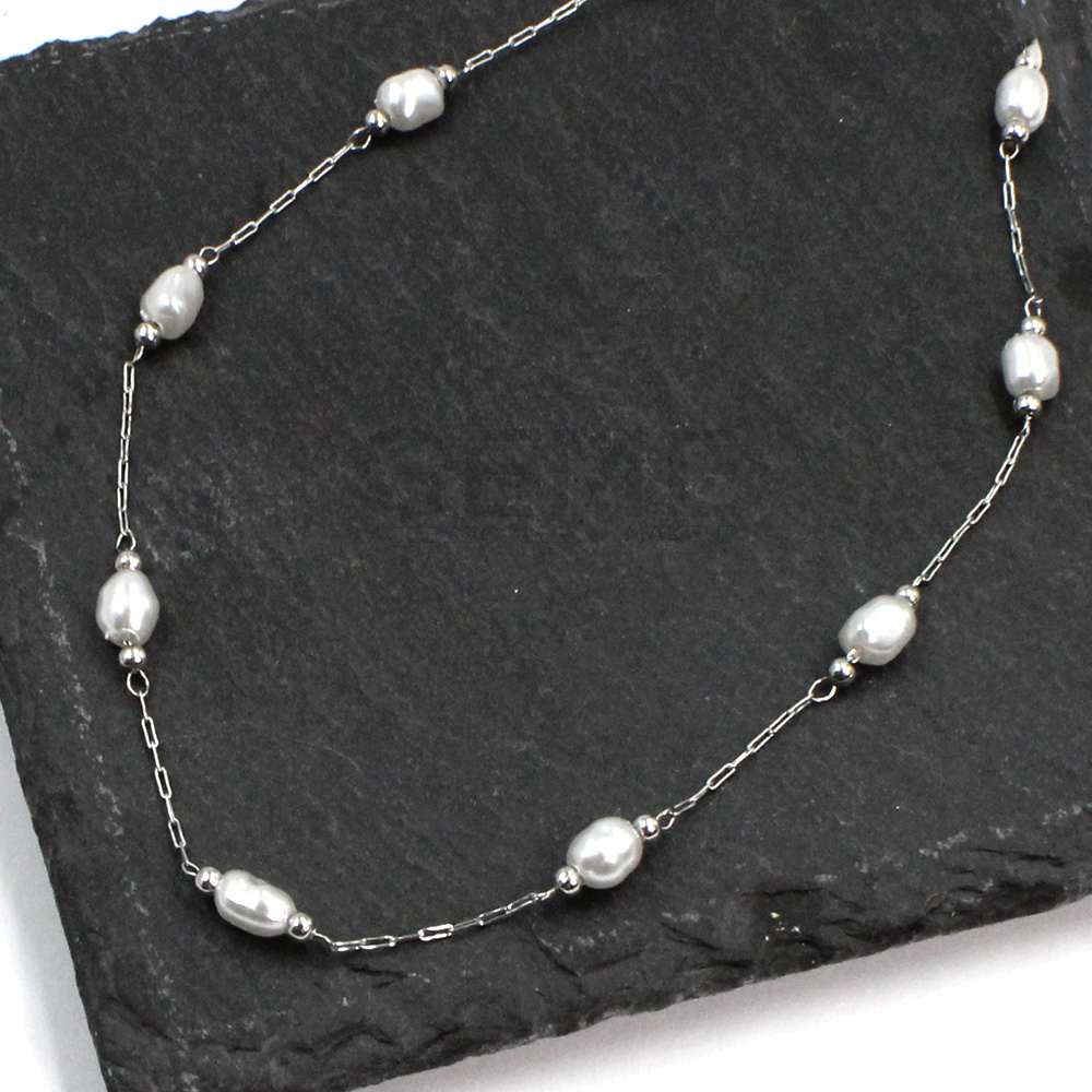 Ατσάλινο κολιέ πέρλα οβάλ ανάγλυφη 4mm