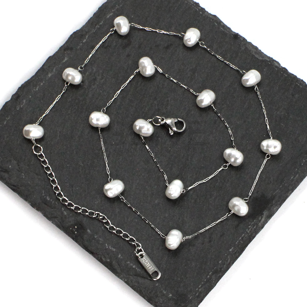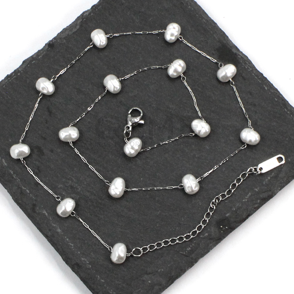 Ατσάλινο κολιέ πέρλα οβάλ ανάγλυφη 5.3mm ποσότητα
