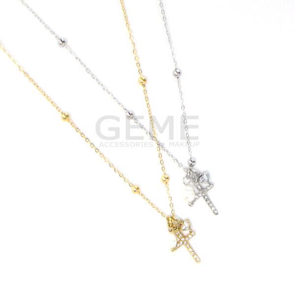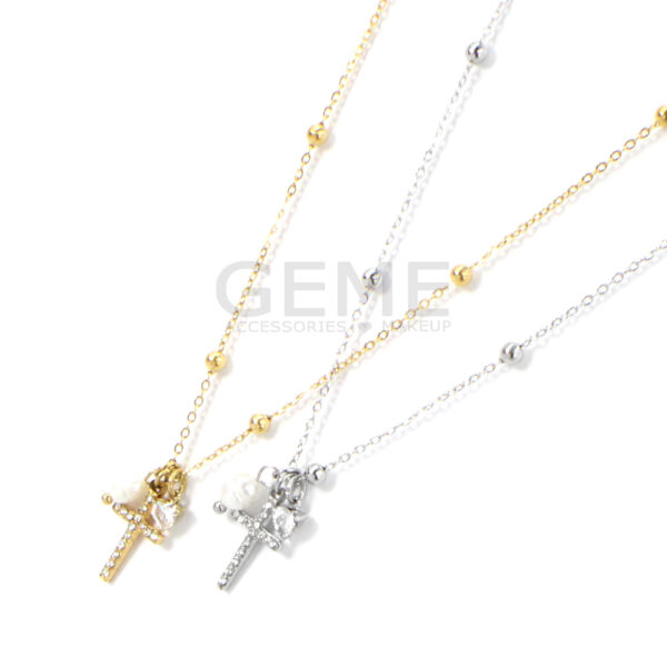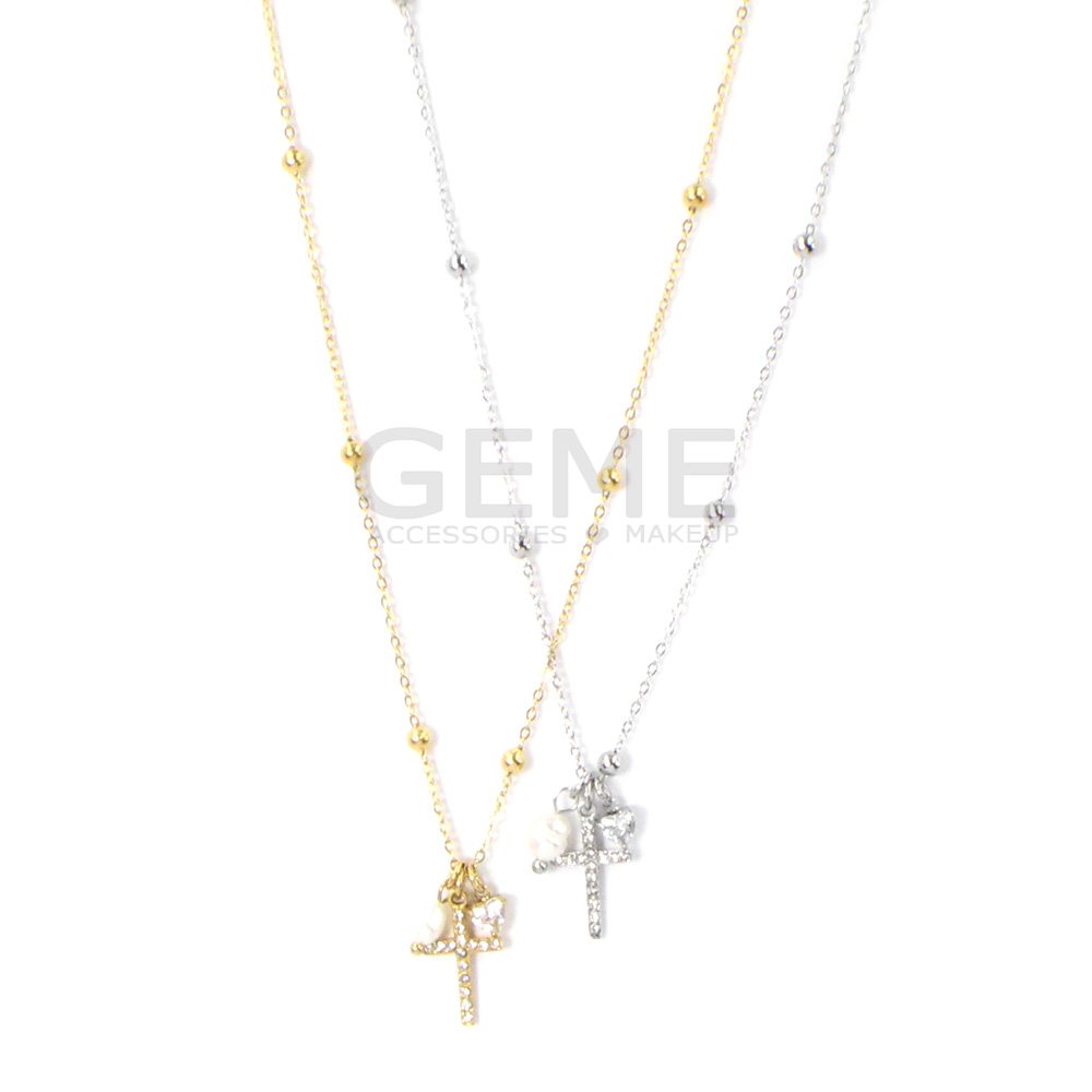 Ατσάλινο κολιέ σταυρός strass πέρλα ποσότητα