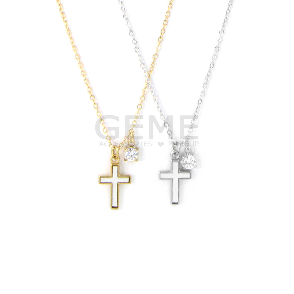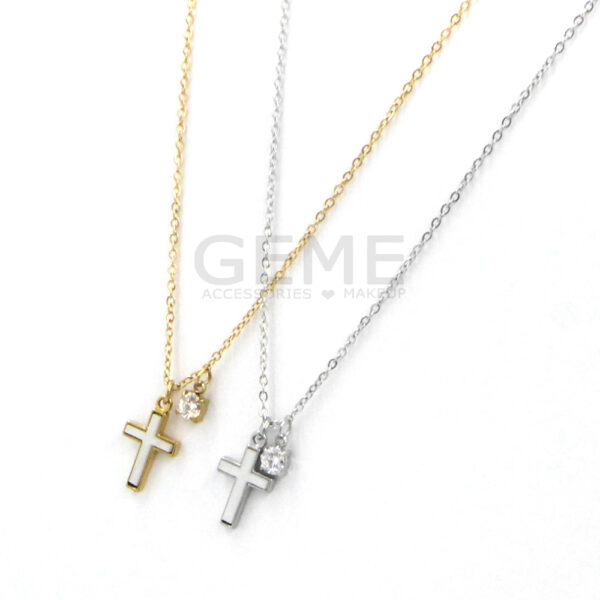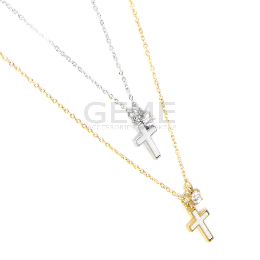 Ατσάλινο κολιέ σταυρός & strass ποσότητα