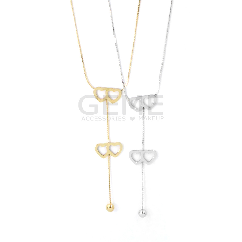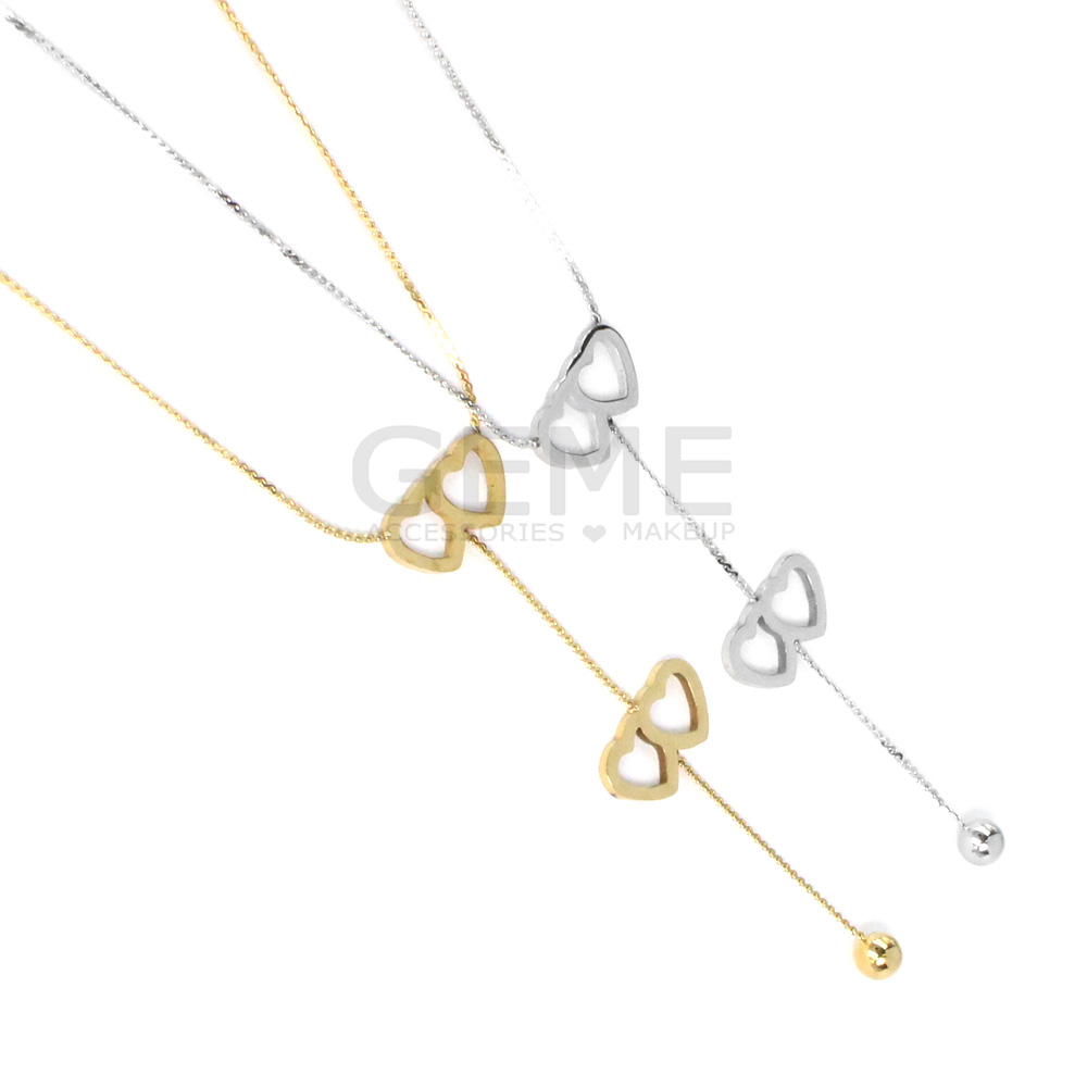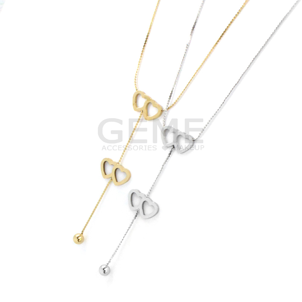 Ατσάλινο κολιέ ball γραβάτα με διπλές καρδιές ποσότητα