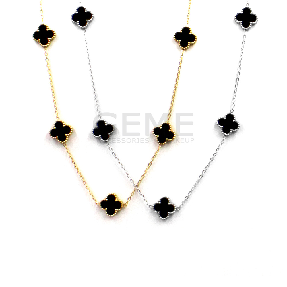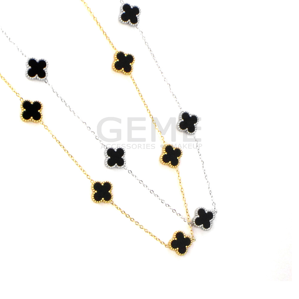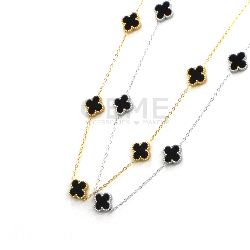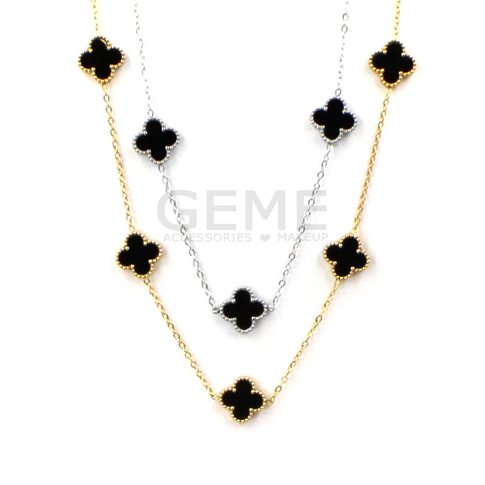 Ατσάλινο κολιέ clover BLACK (short(48cm)-5) ποσότητα