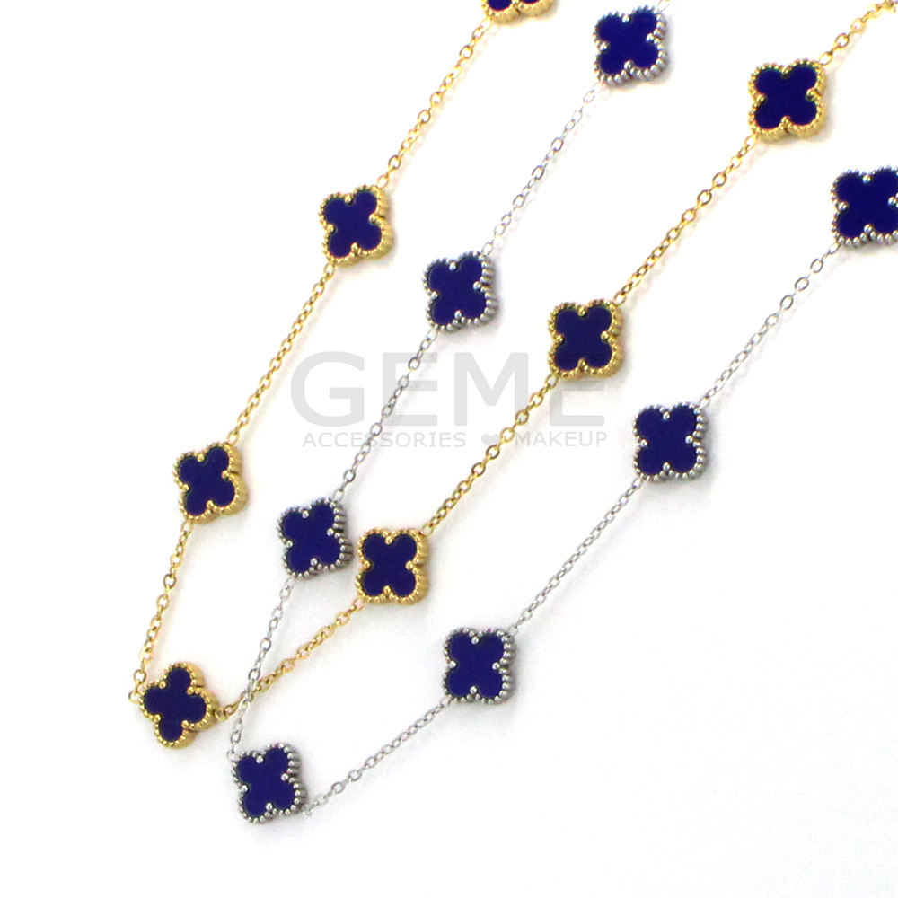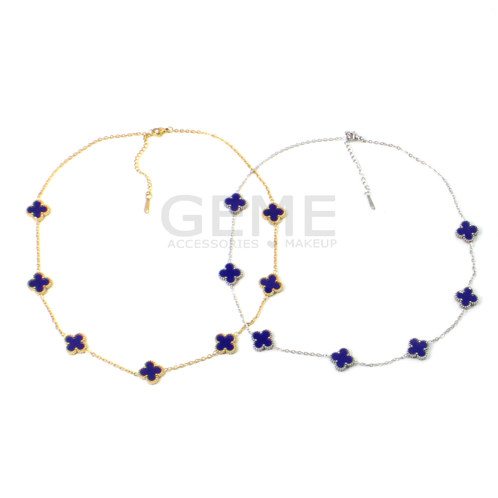 Ατσάλινο κολιέ clover BLUE (short-7) ποσότητα