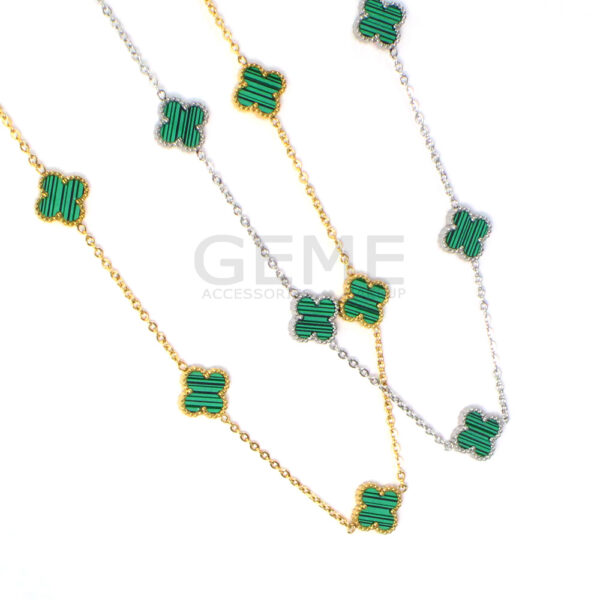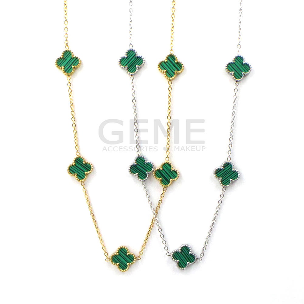 Ατσάλινο κολιέ clover GREEN (short-5) ποσότητα