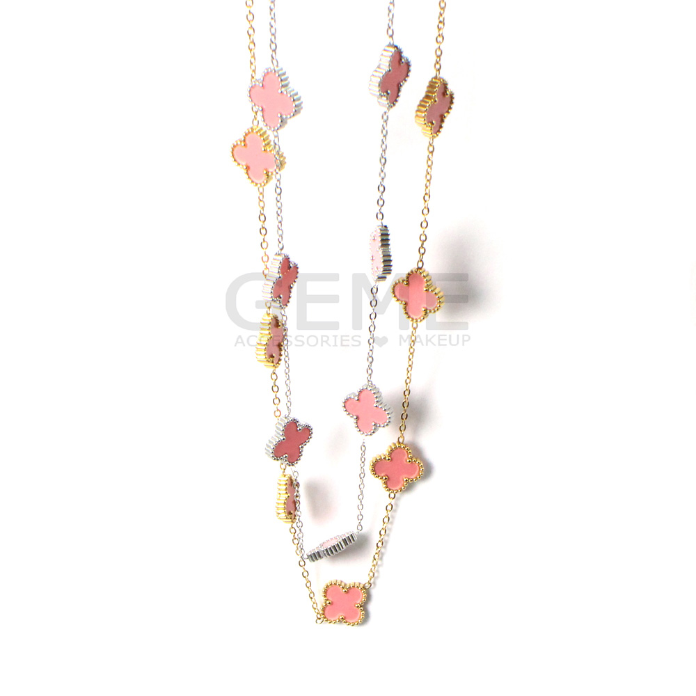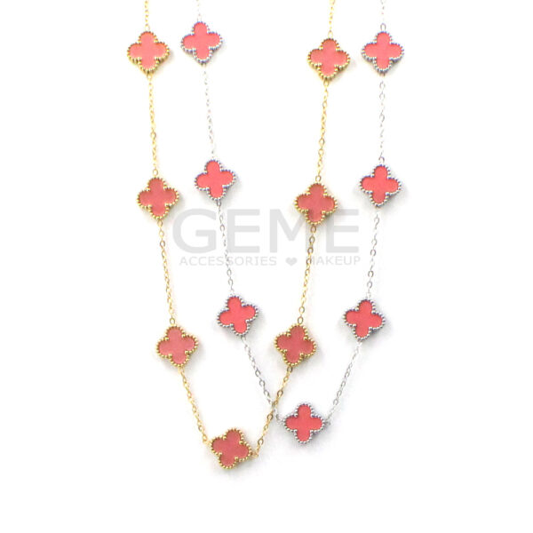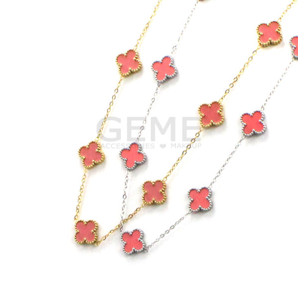Ατσάλινο κολιέ clover PINK (short-7) ποσότητα