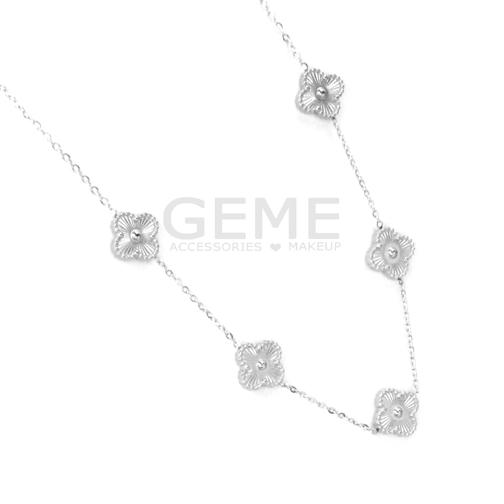 Ατσάλινο κολιέ clover SILVER (short-5) ποσότητα