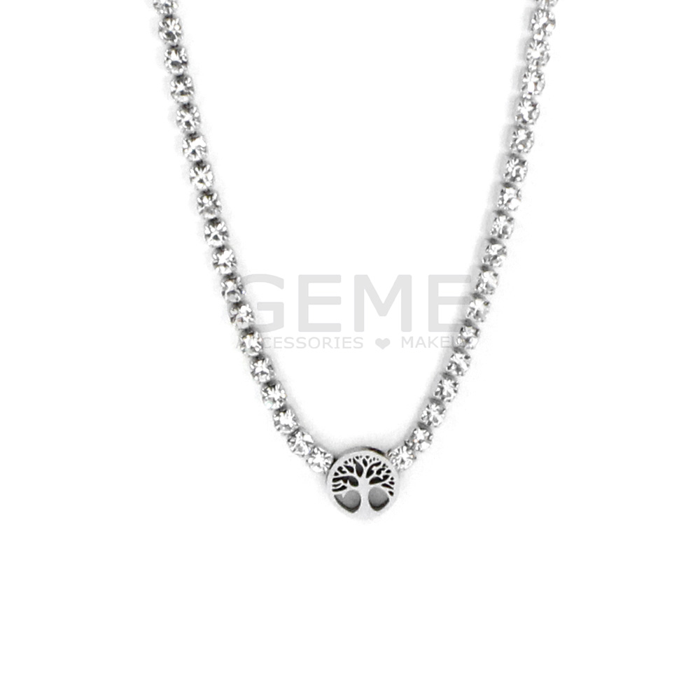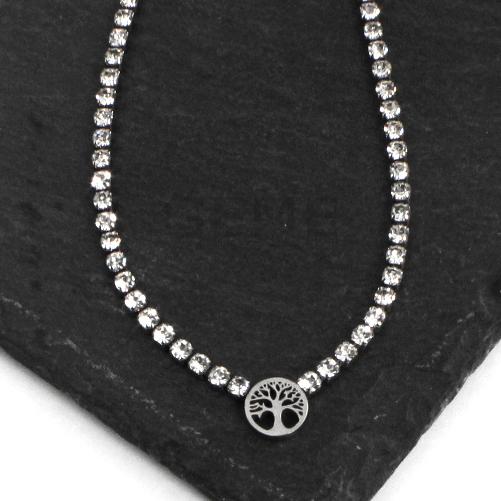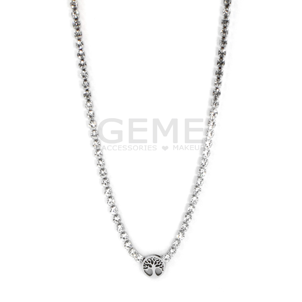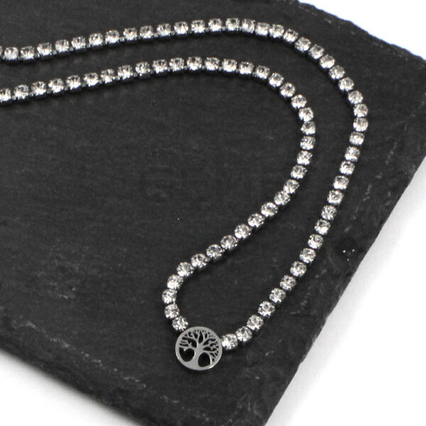 Ατσάλινο κολιέ strass δέντρο της ζωής