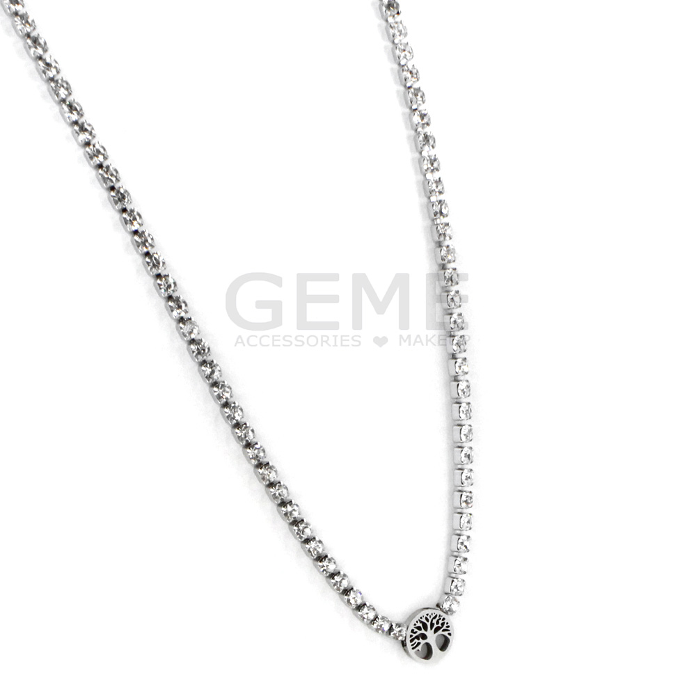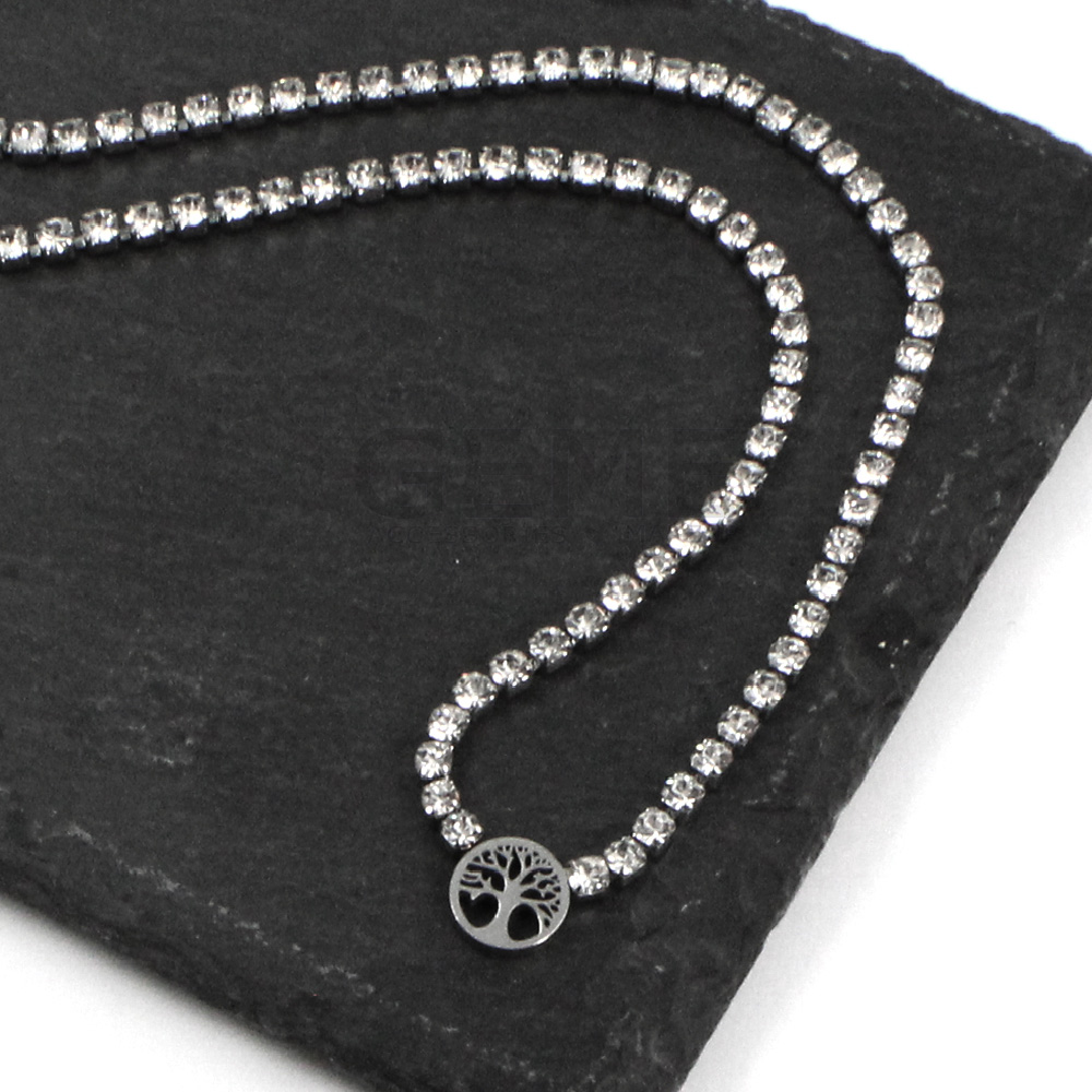 Ατσάλινο κολιέ strass δέντρο της ζωής ποσότητα