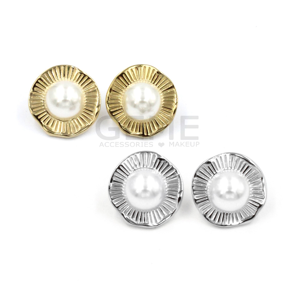 Ατσάλινα σκουλαρίκια ανάγλυφα με πέρλα ποσότητα