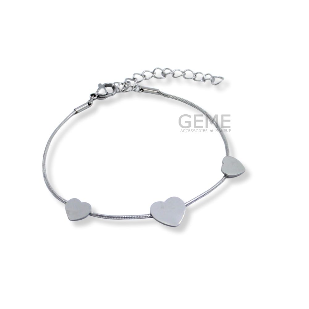 Ατσάλινο βραχιόλι snake round 3 καρδιές ποσότητα