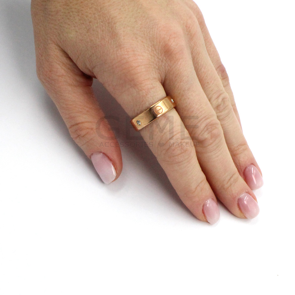 Ατσάλινο δαχτυλίδι βέρα Θ strass ROSE GOLD ποσότητα