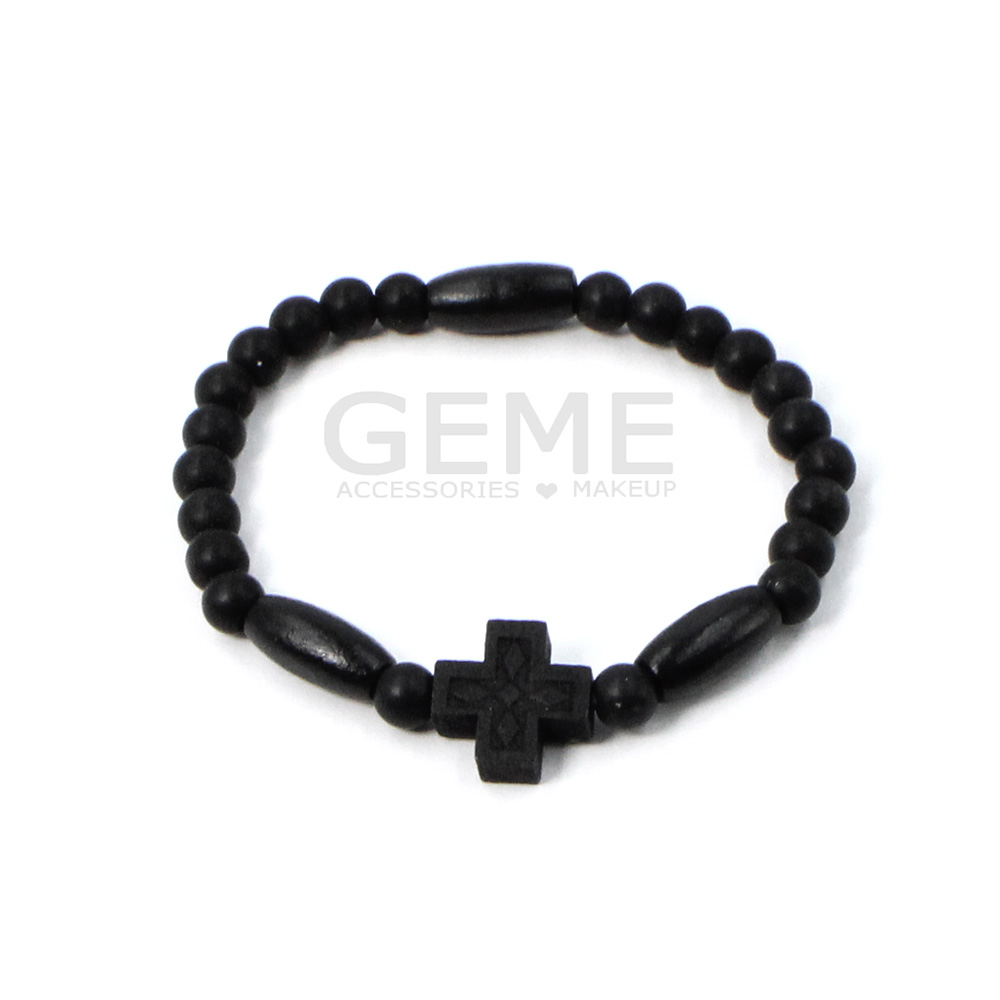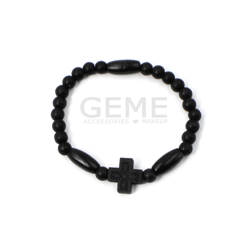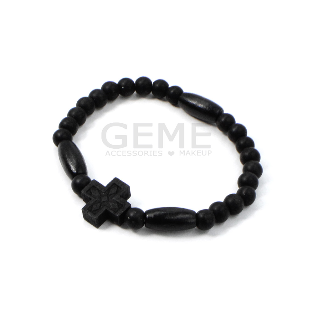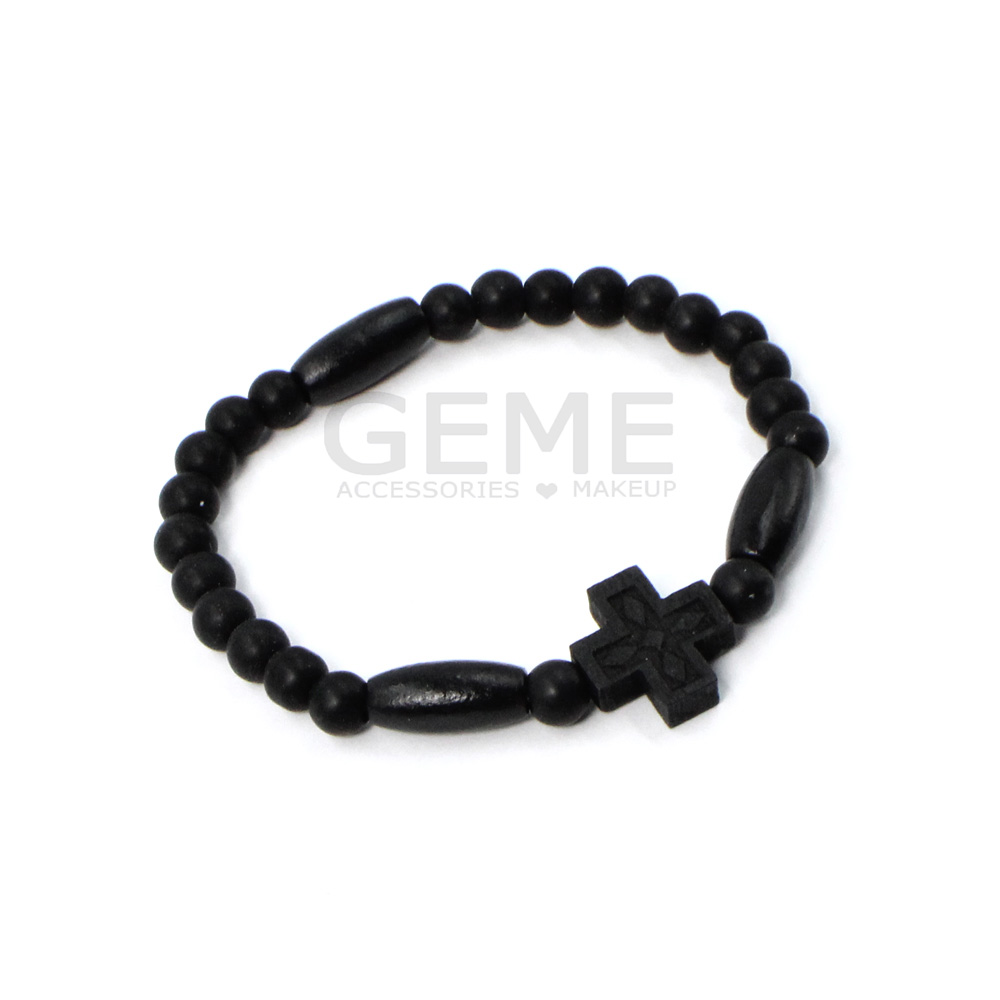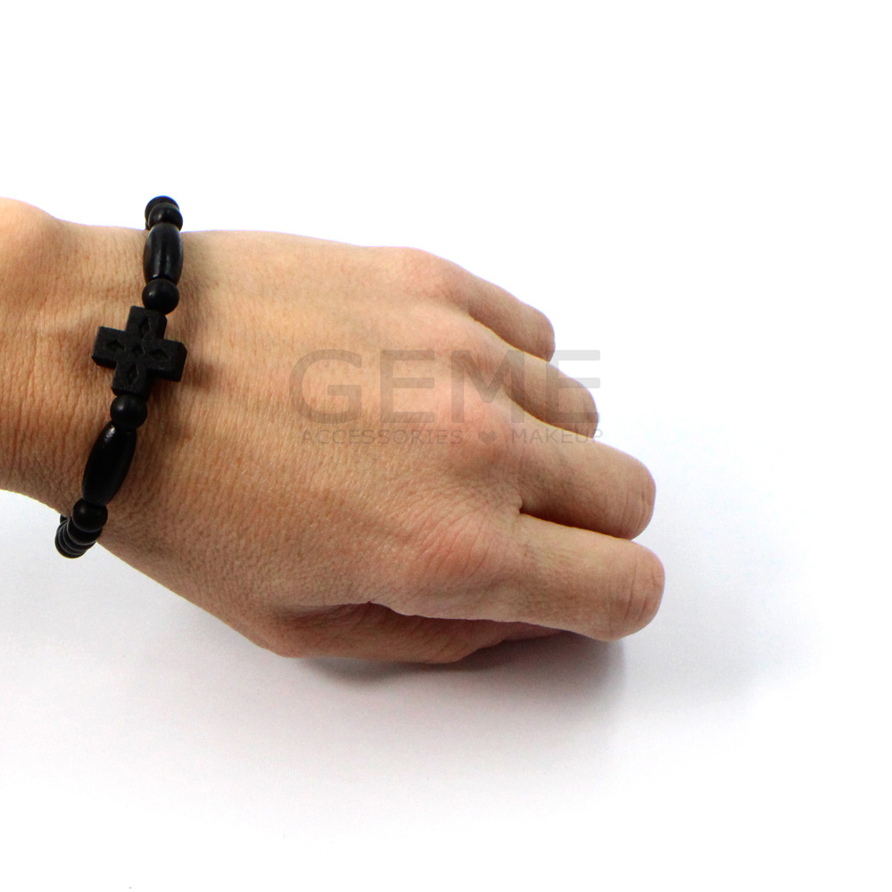 Βραχιόλι ελαστικό μαύρο με χάντρες και σταυρό ποσότητα