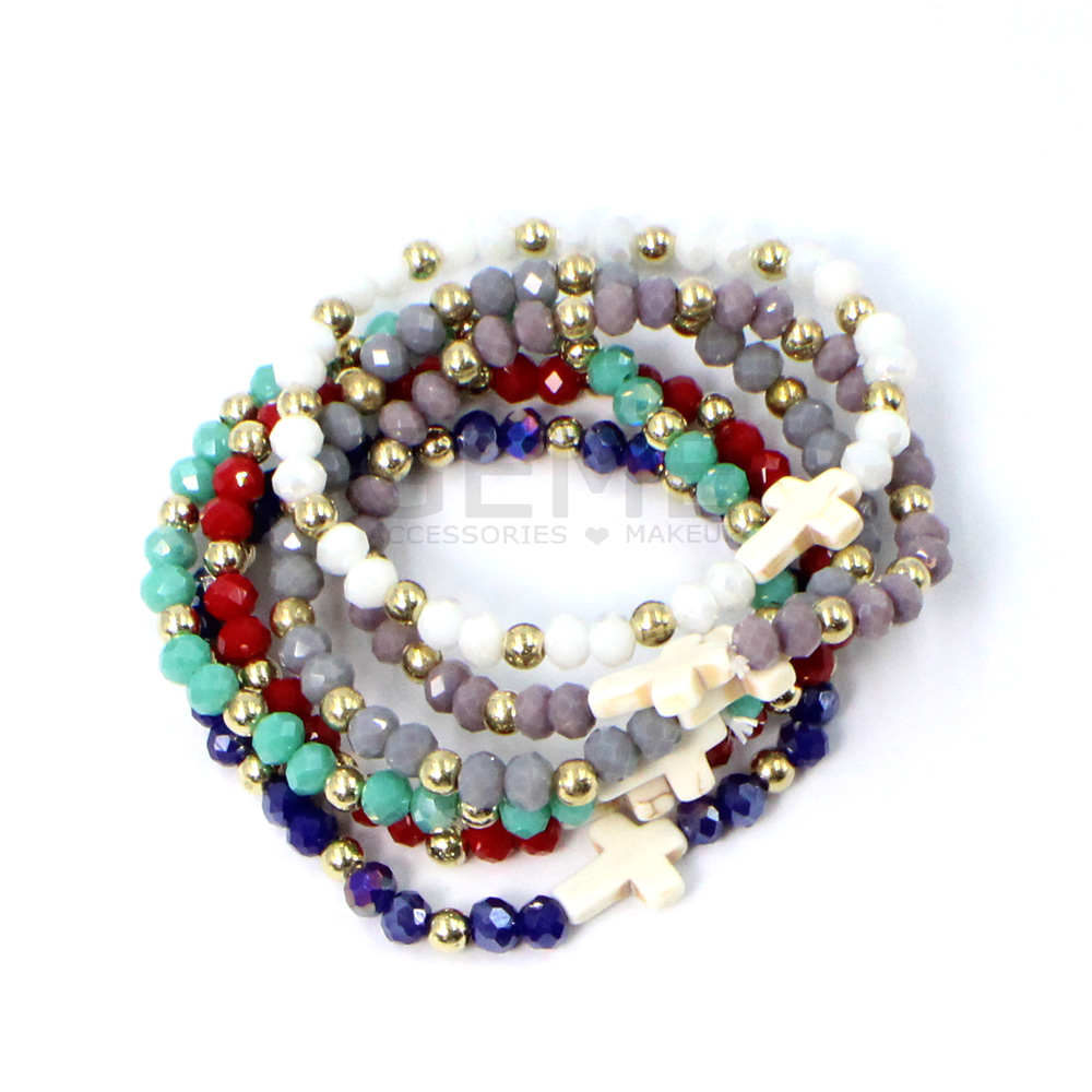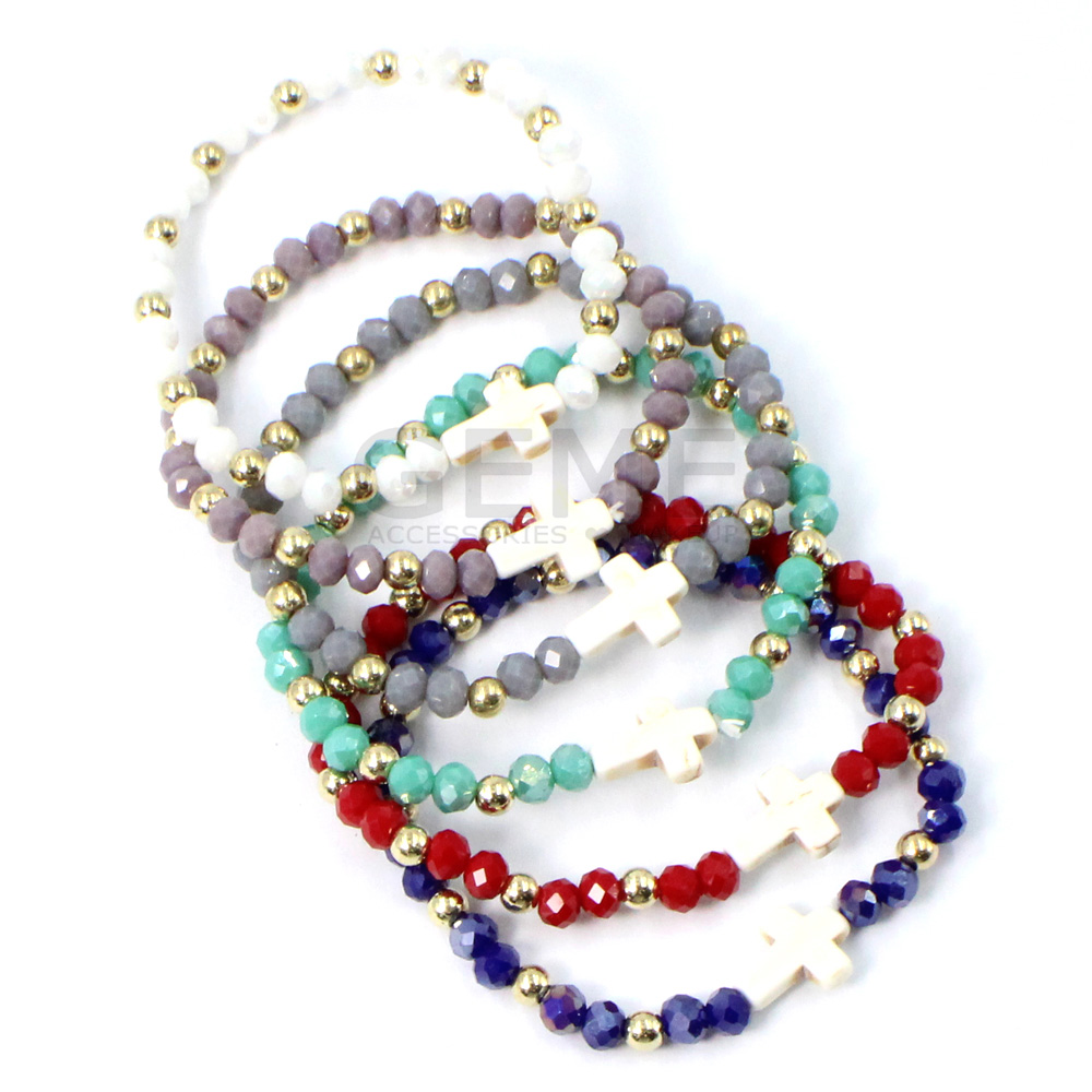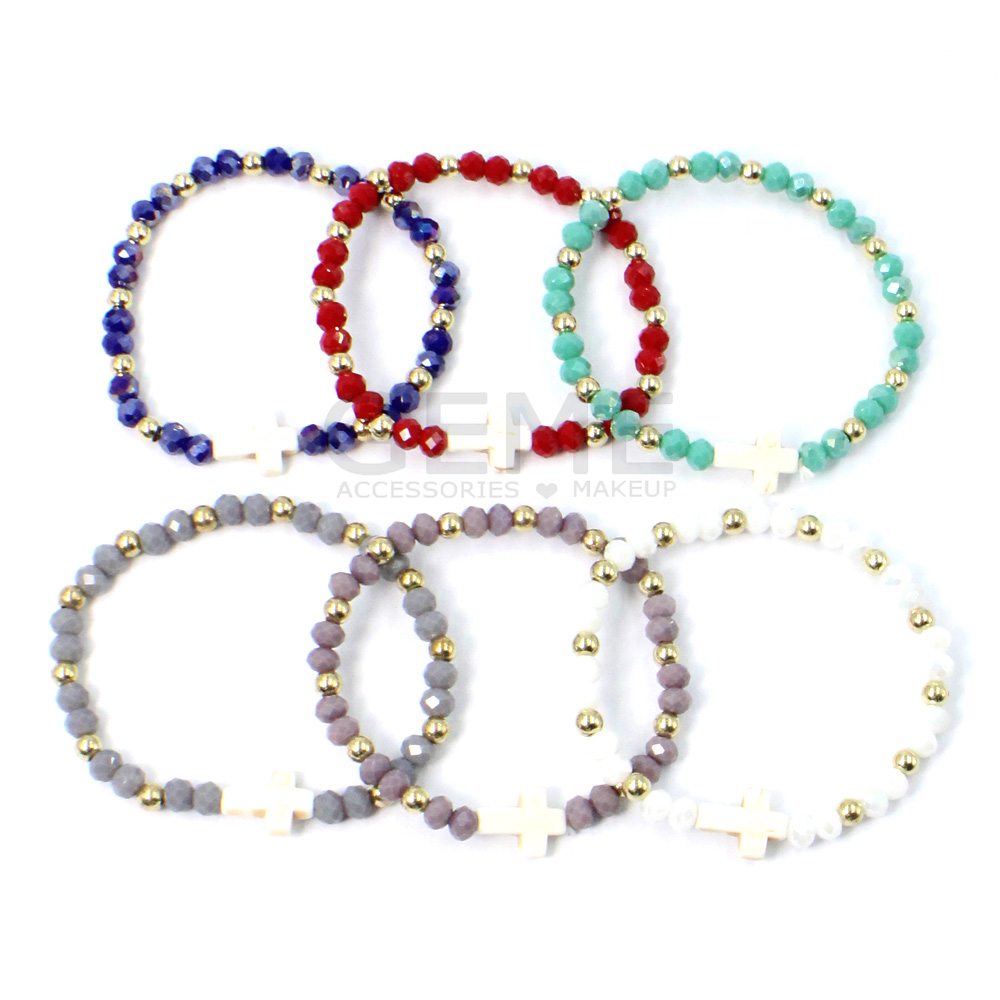 Βραχιόλι ελαστικό με χάντρες και σταυρό ποσότητα