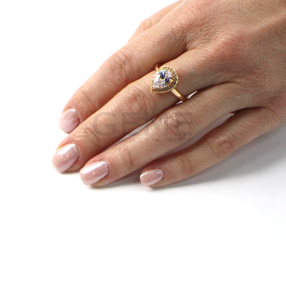 Δαχτυλίδι μονόπετρο δάκρυ με strass ποσότητα