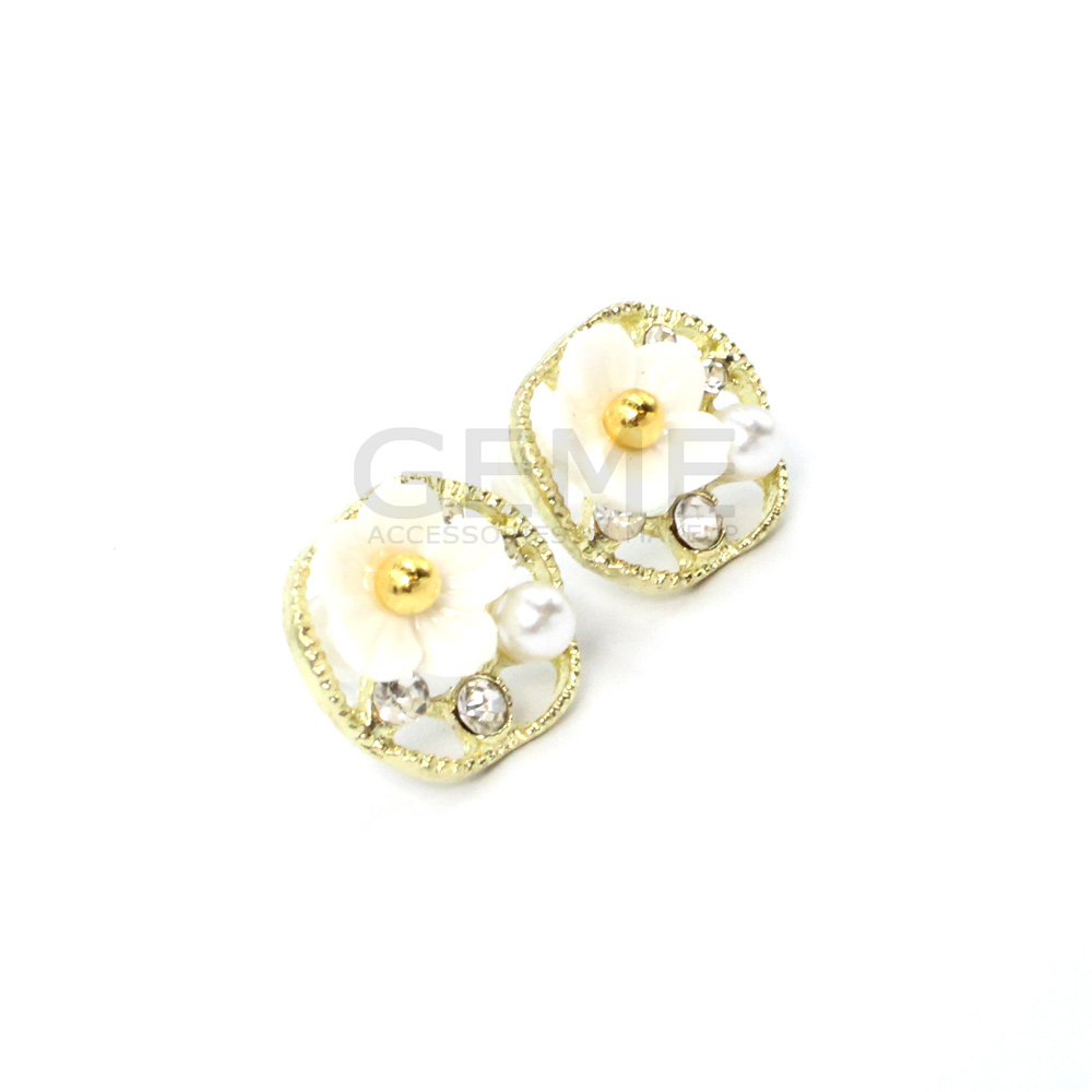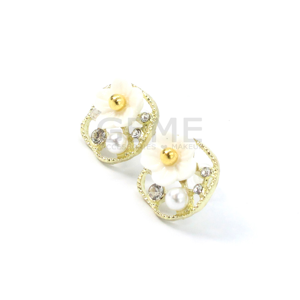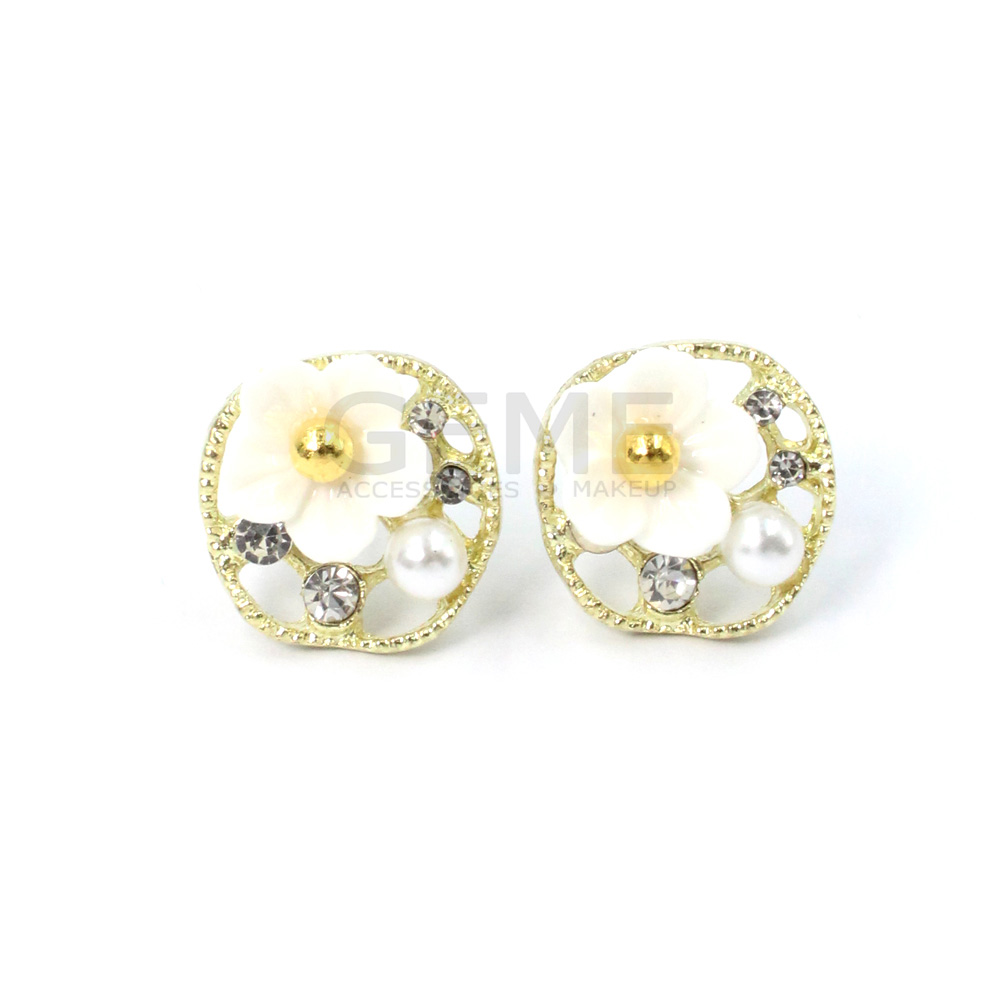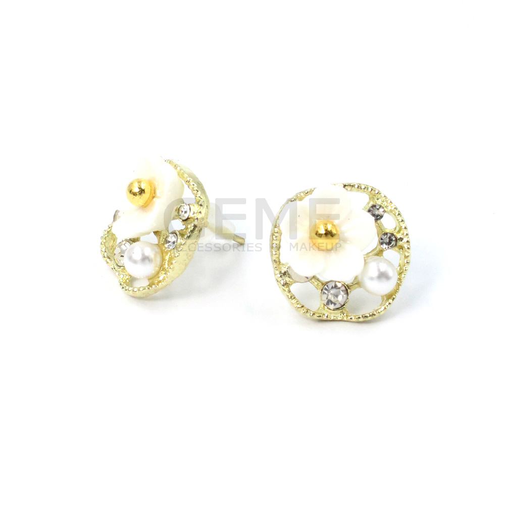 Σκουλαρίκια κύκλος με λουλούδι, πέρλα και strass ποσότητα