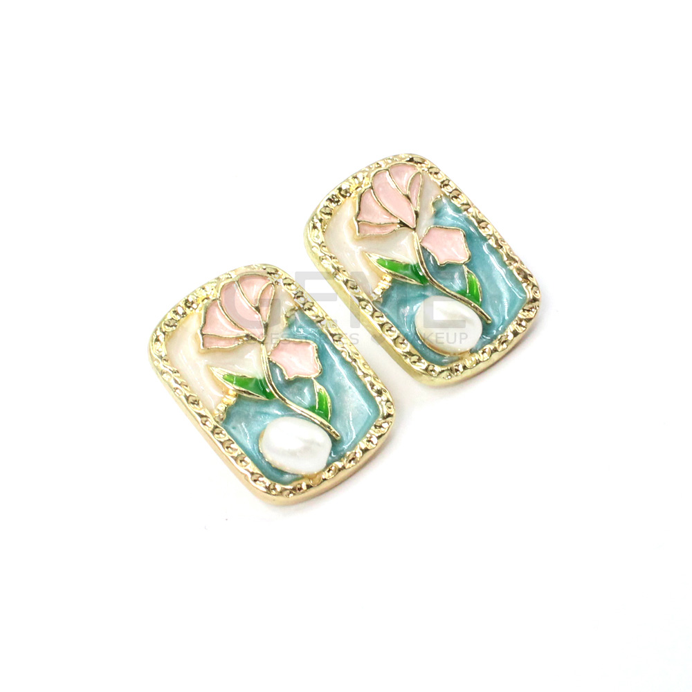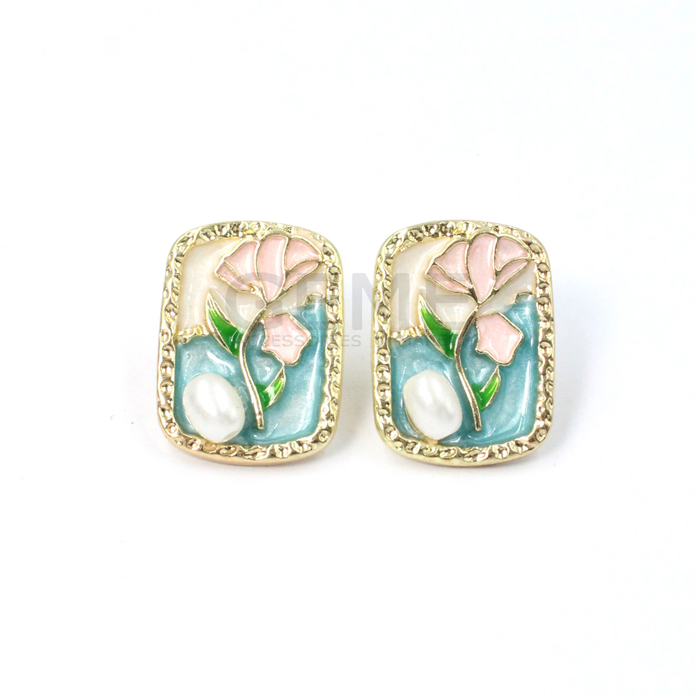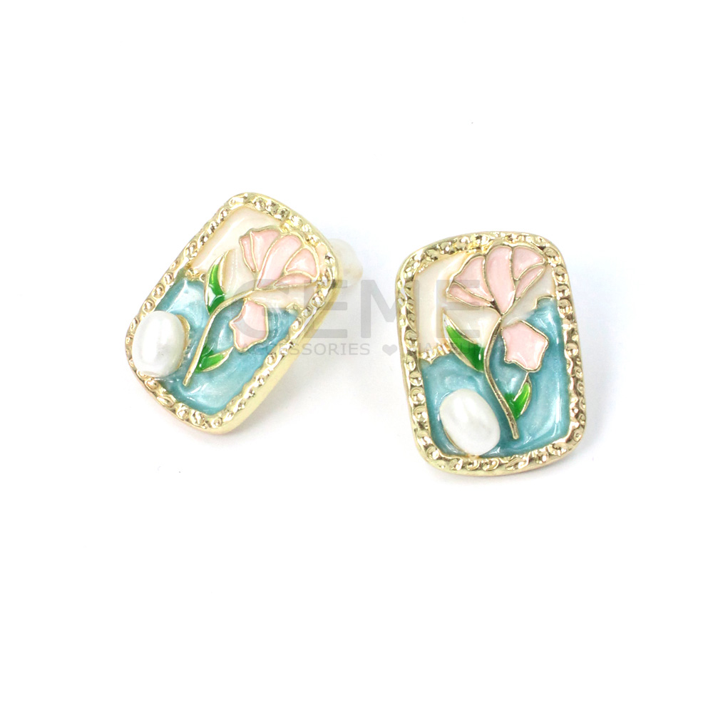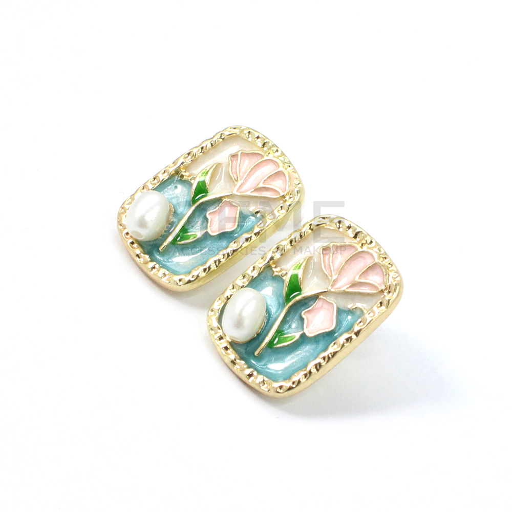 Σκουλαρίκια ορθογώνια με λουλούδι και πέρλα ποσότητα