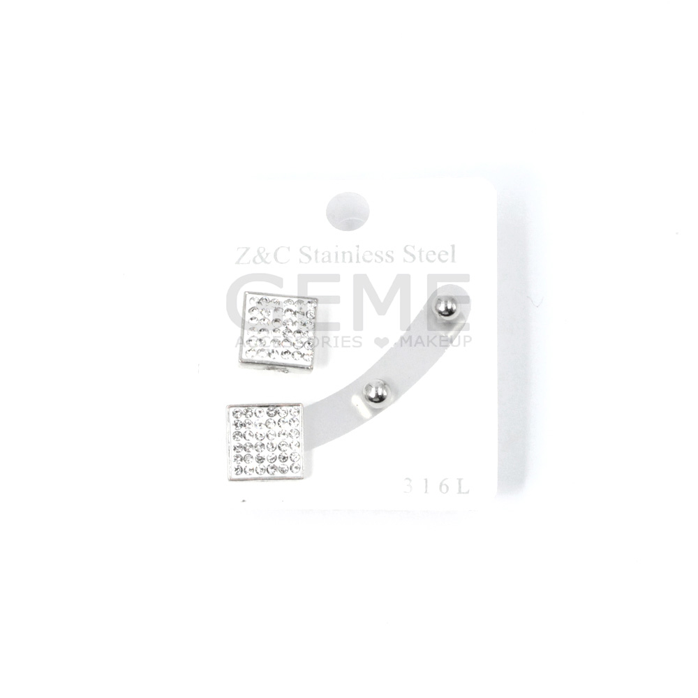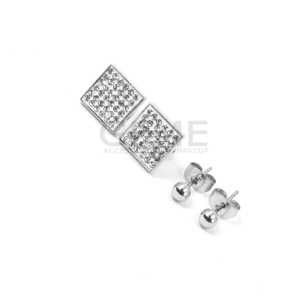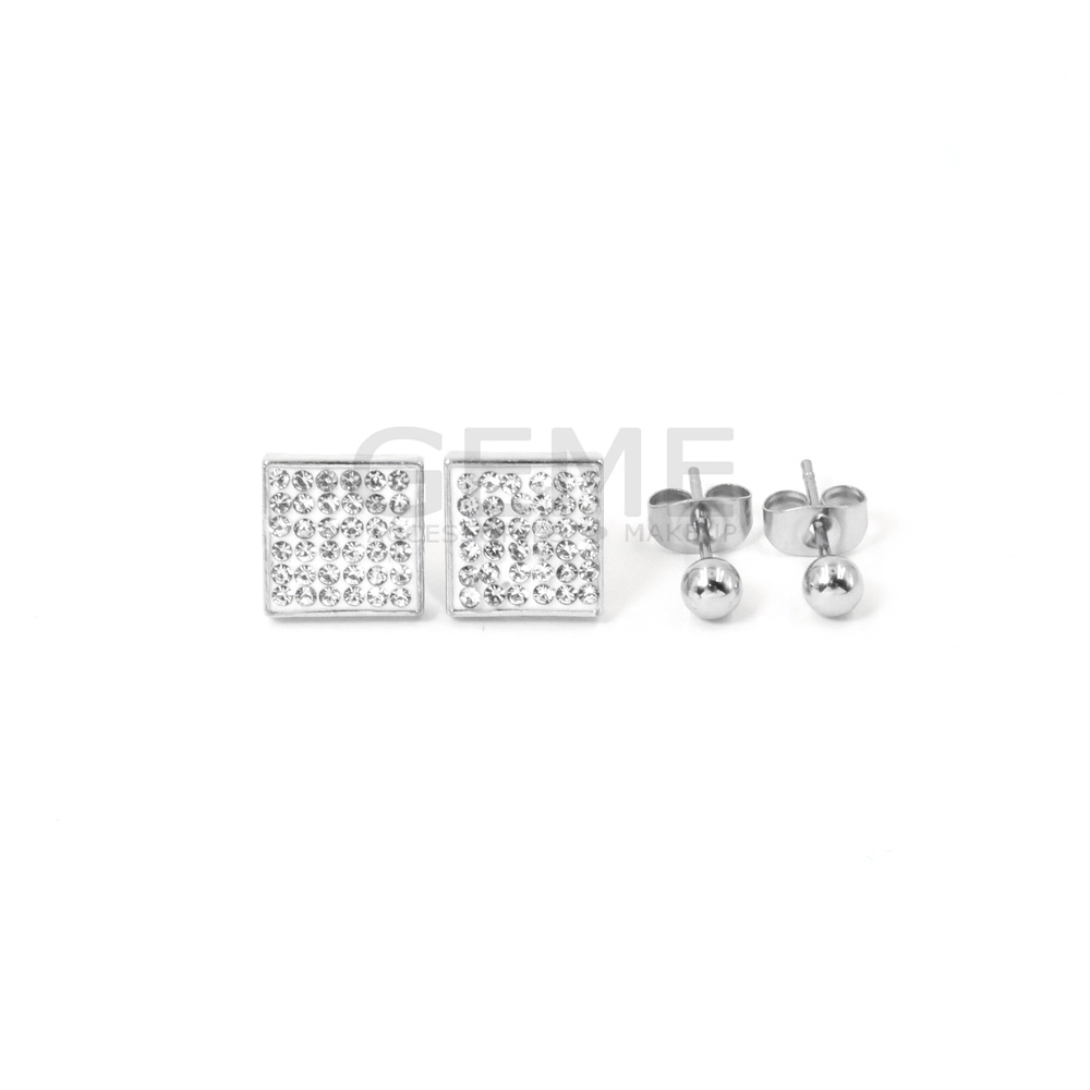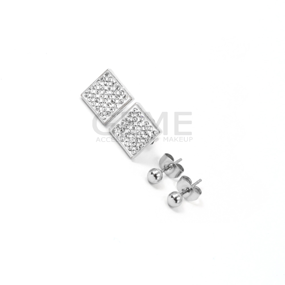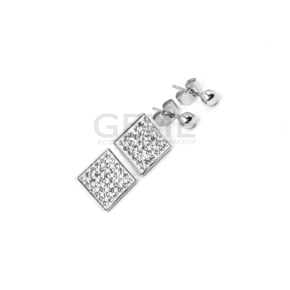 Set 2 ατσάλινα σκουλαρίκια τετράγωνο strass - balls ποσότητα