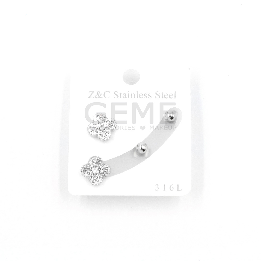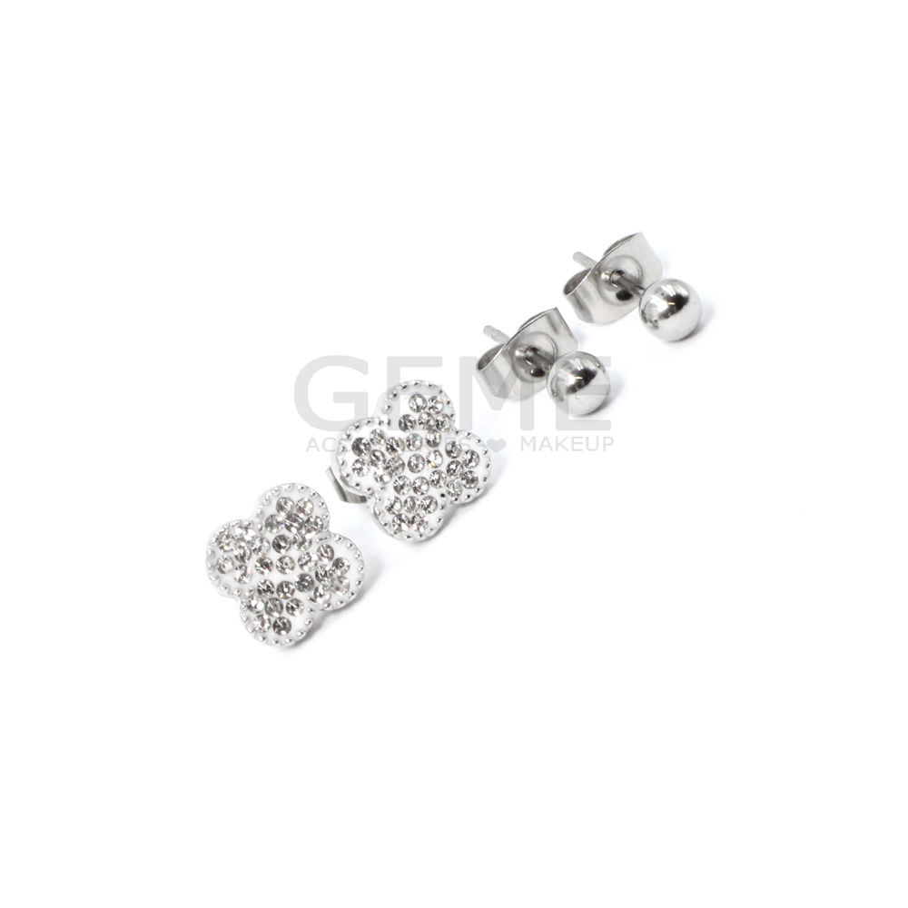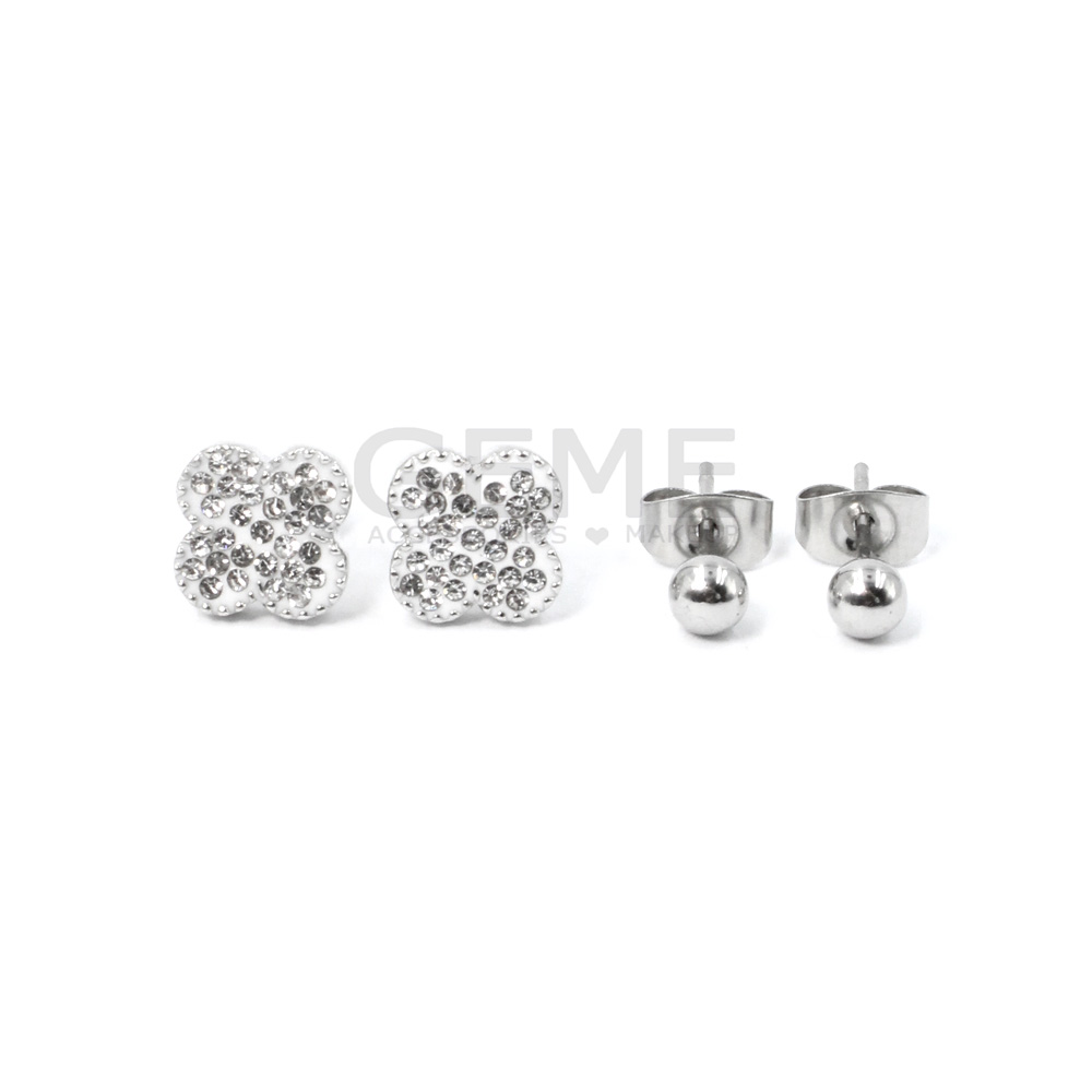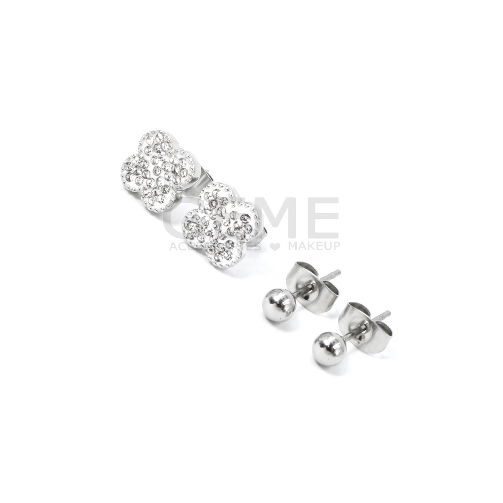 Set 2 ατσάλινα σκουλαρίκια clover strass – balls ποσότητα